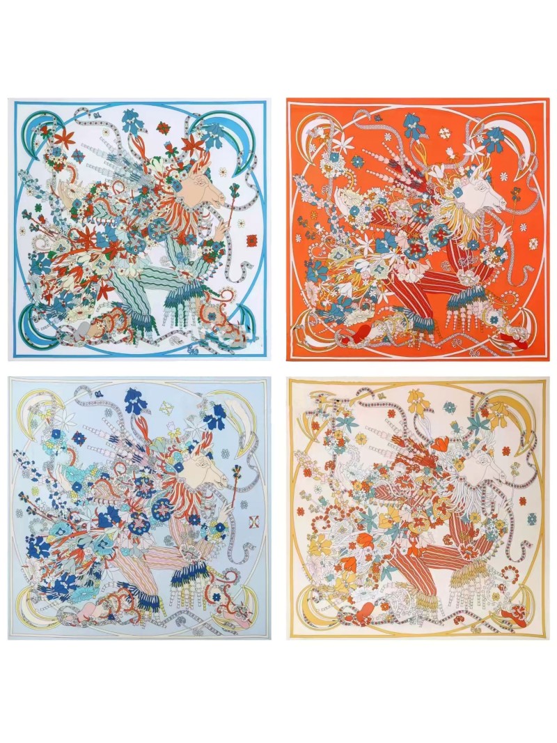 Quadratisches bedrucktes Tuch. Stoff mit Seideneffekt. Verschiedene Farben.