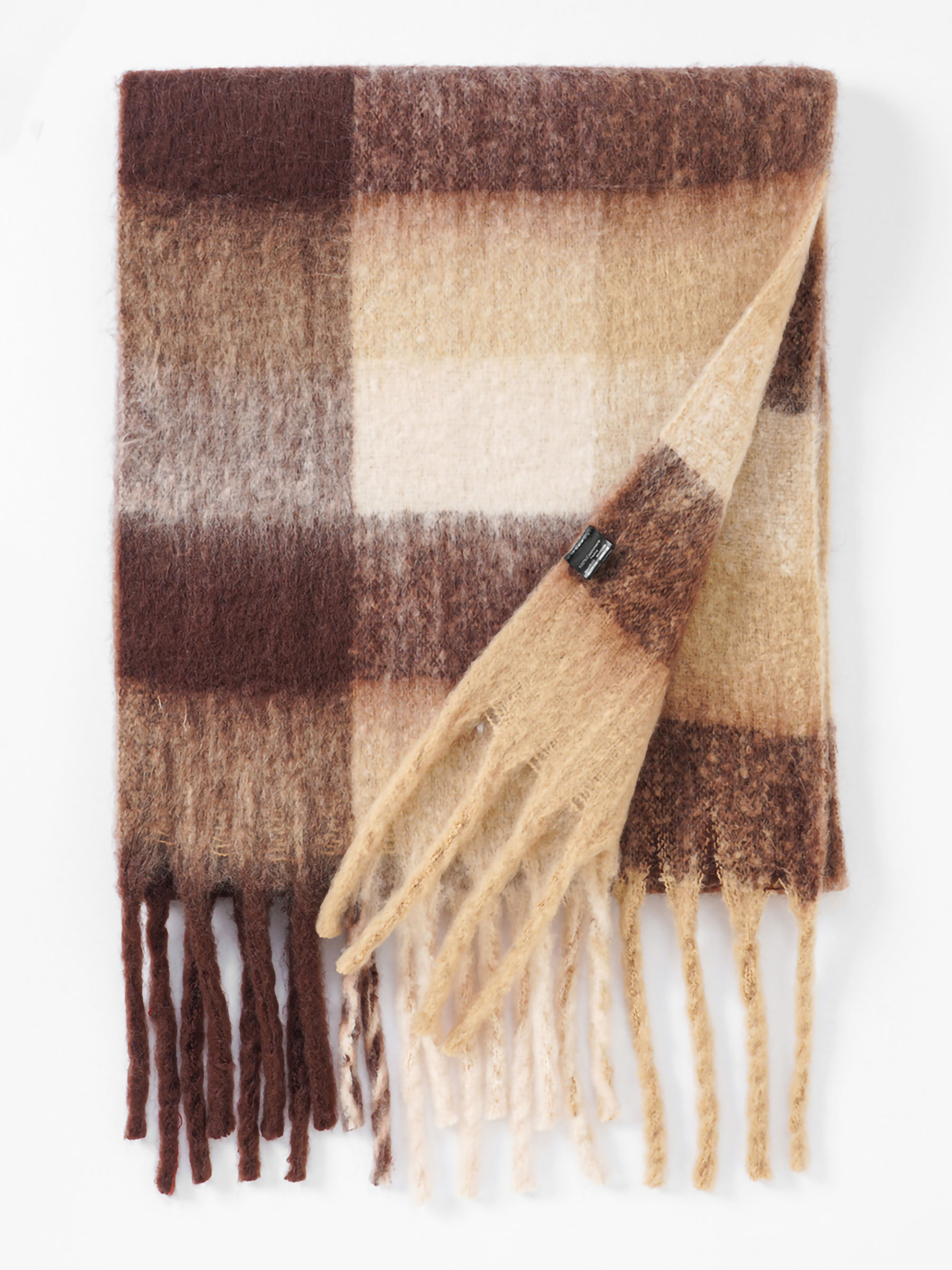 Schal mit Karomuster. Fransendetail. Dick gestrickt mit Fell. Weicher Griff.
