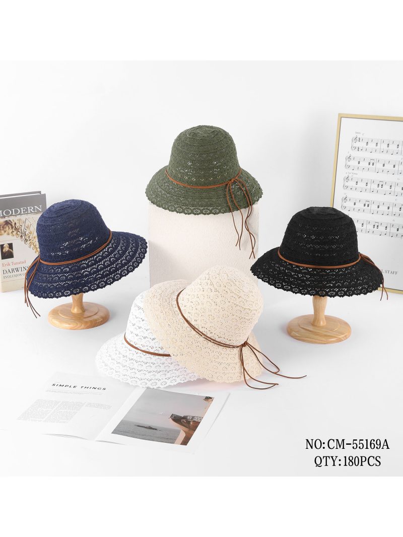 Durchbrochener Basthut mit gewellter Krempe und Kordel