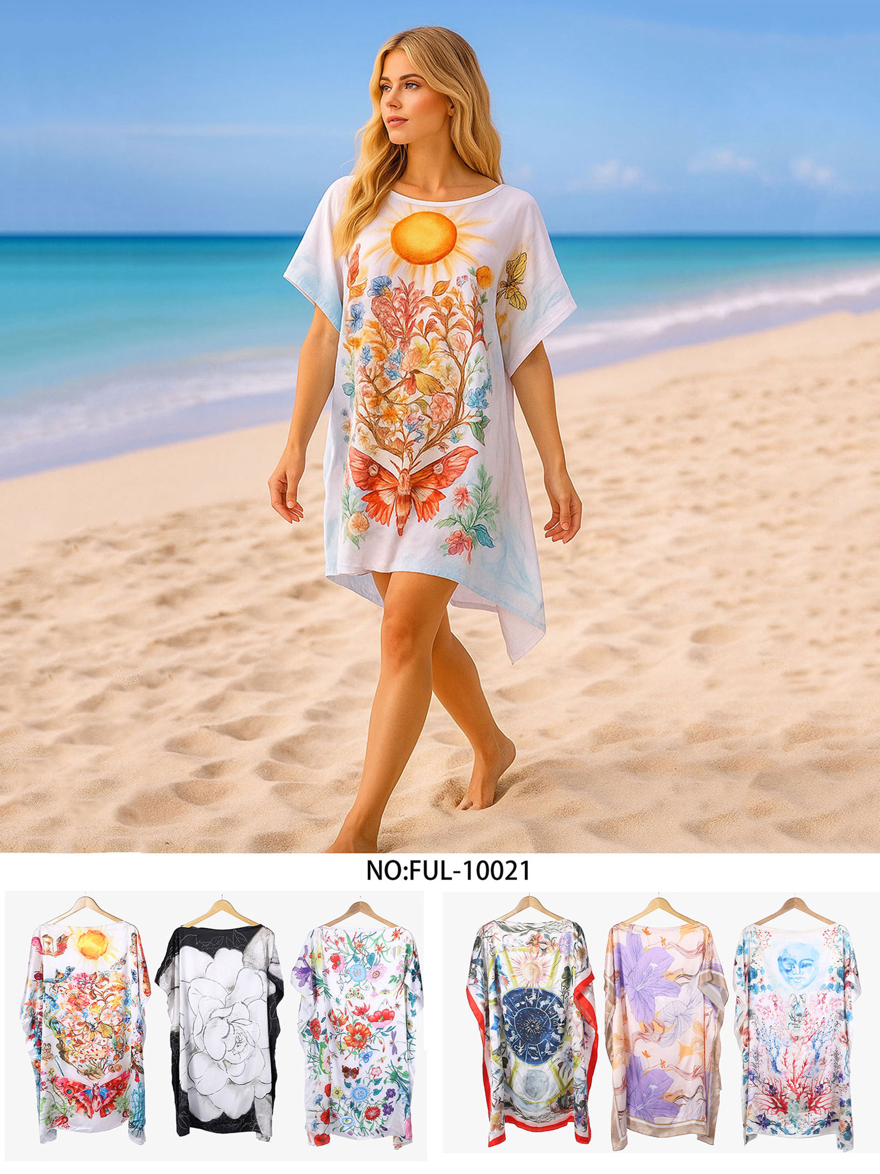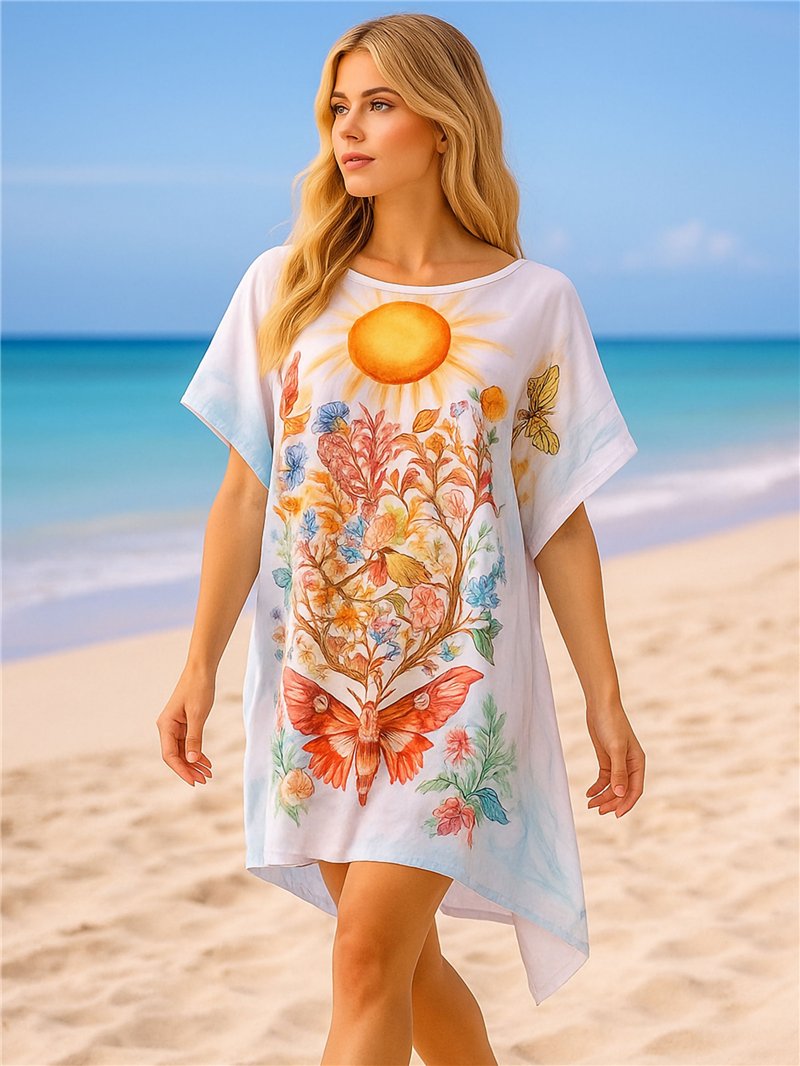 Strandkaftan mit Sonne und Schmetterlingen