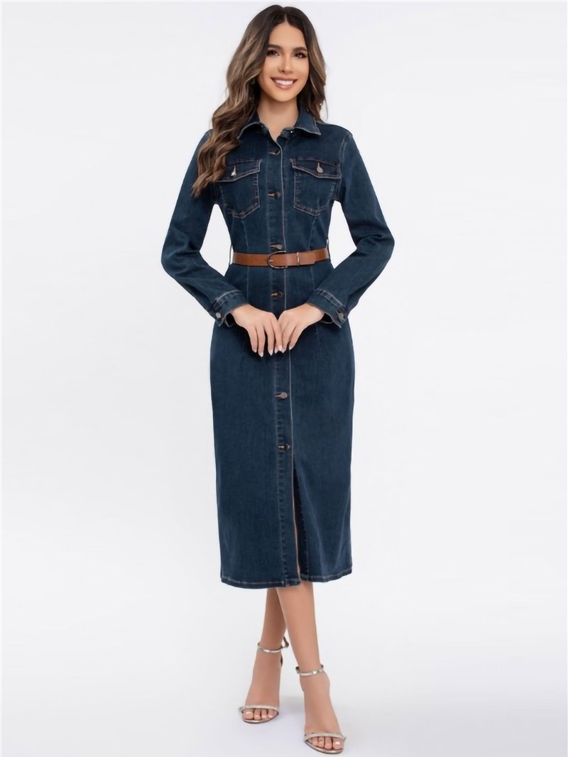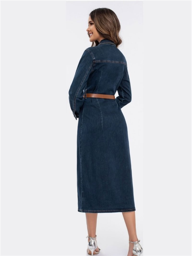 Details des langen Jeanskleides mit Gürtel MF-B22482