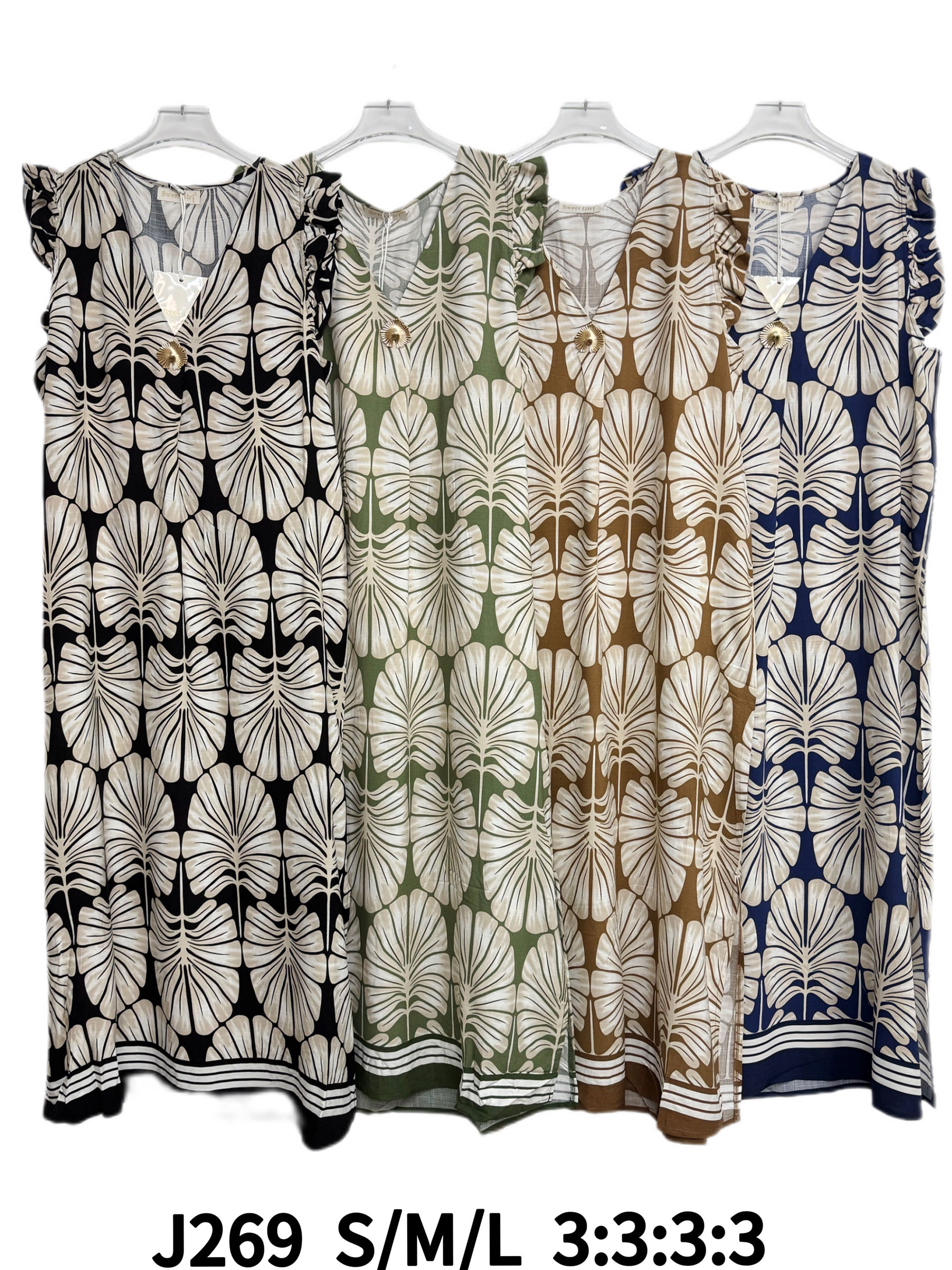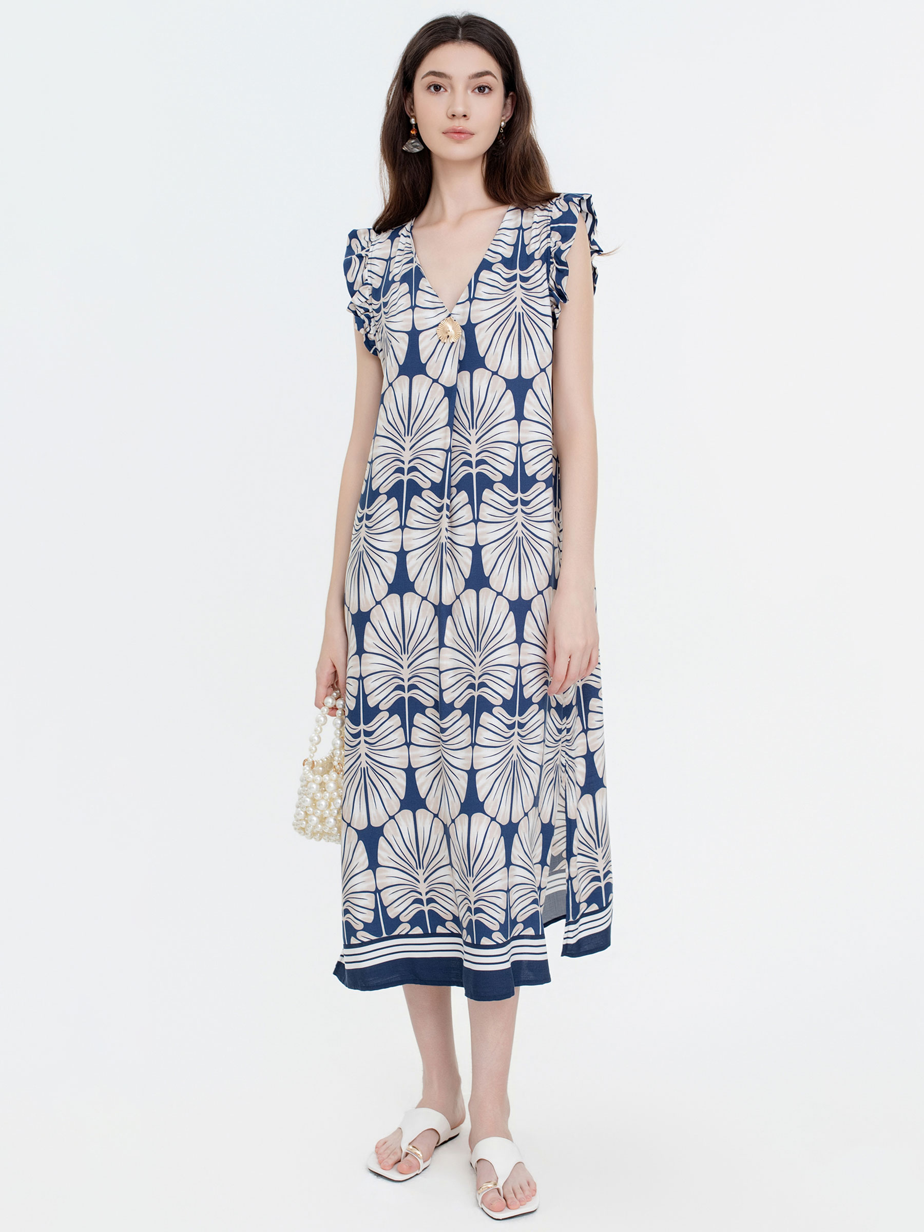 Bedrucktes Midikleid mit Schmuckknopf-Details