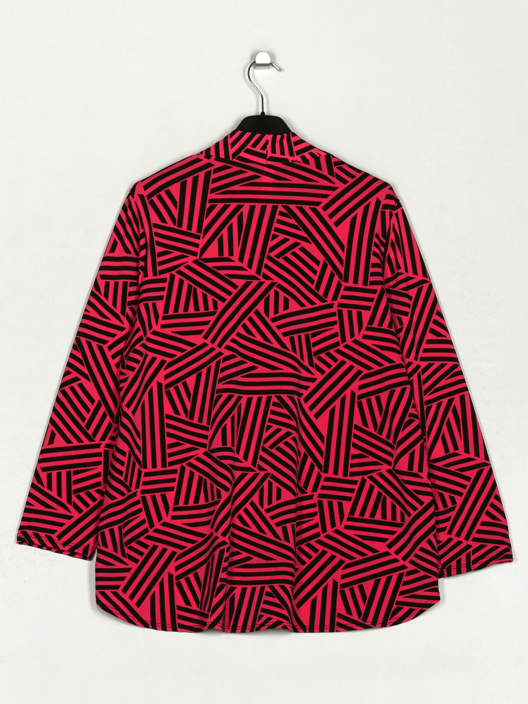 V-neck lycra printed blouse with long sleeves.