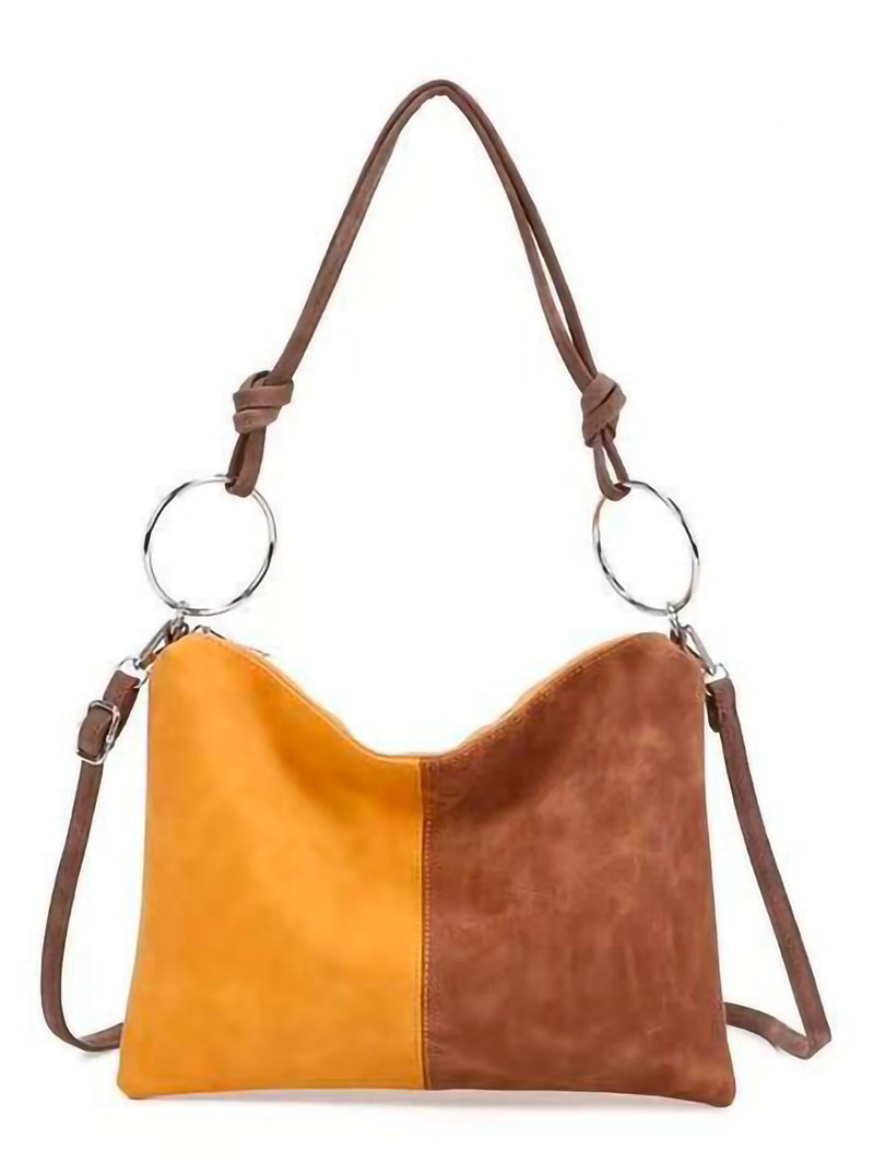 Two-tone hobo shoulder bag.