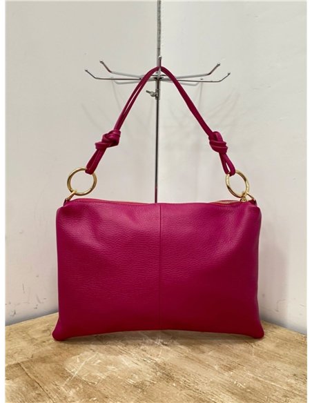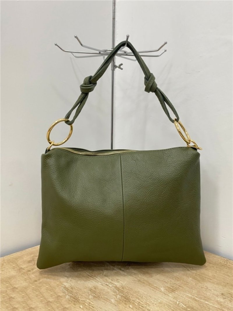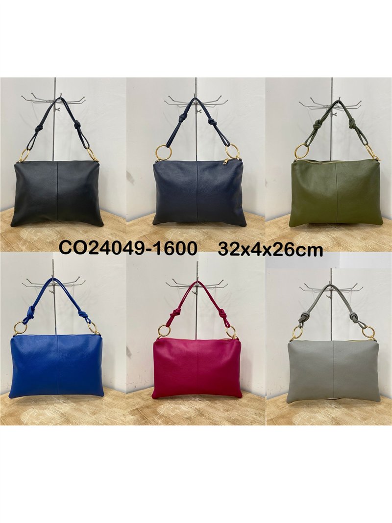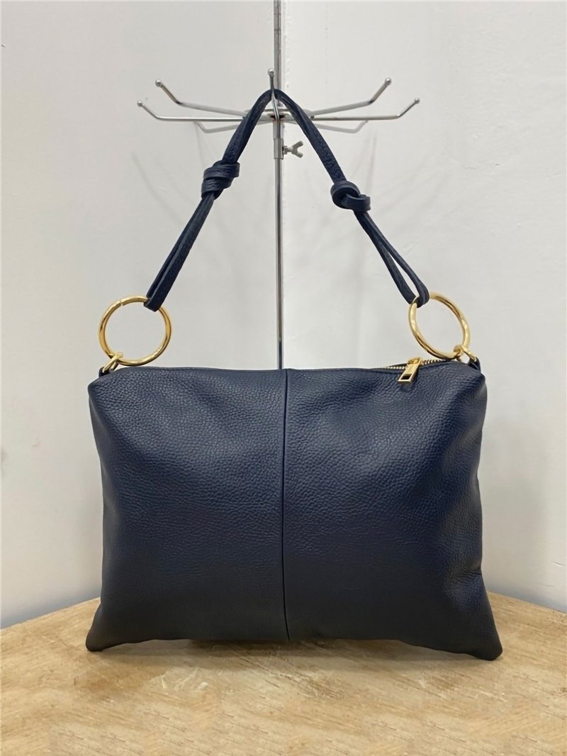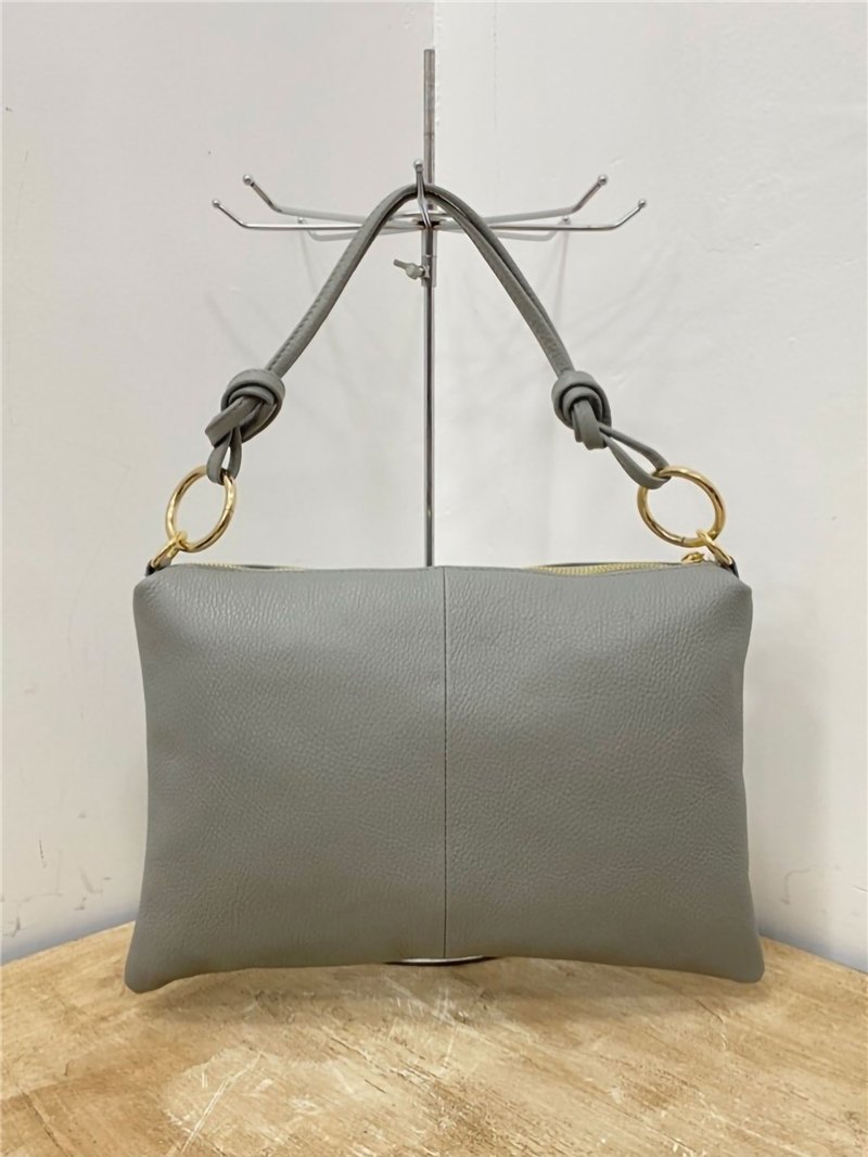 Details of AB-CO24049 minimal leather tote bag with hoops.