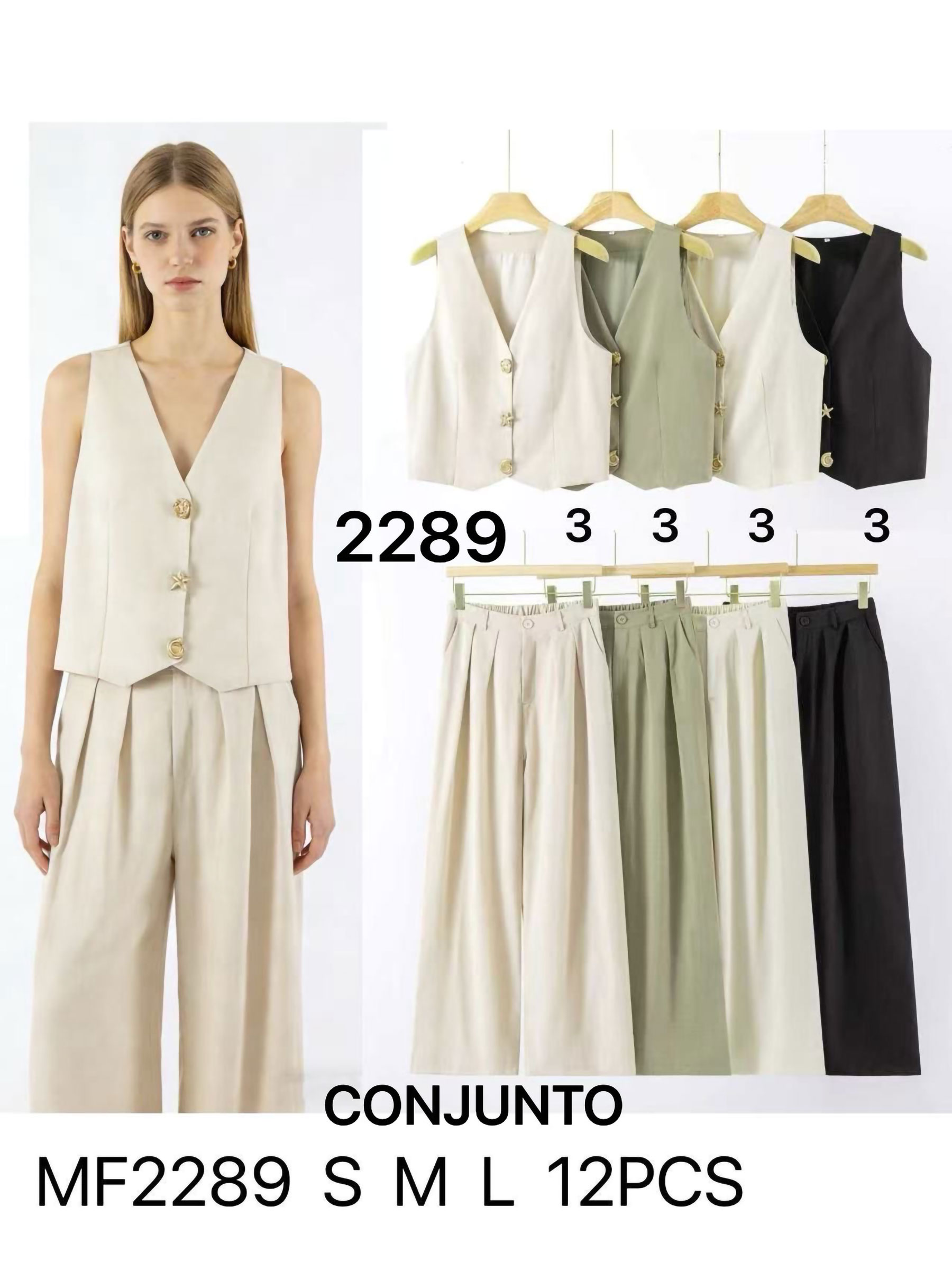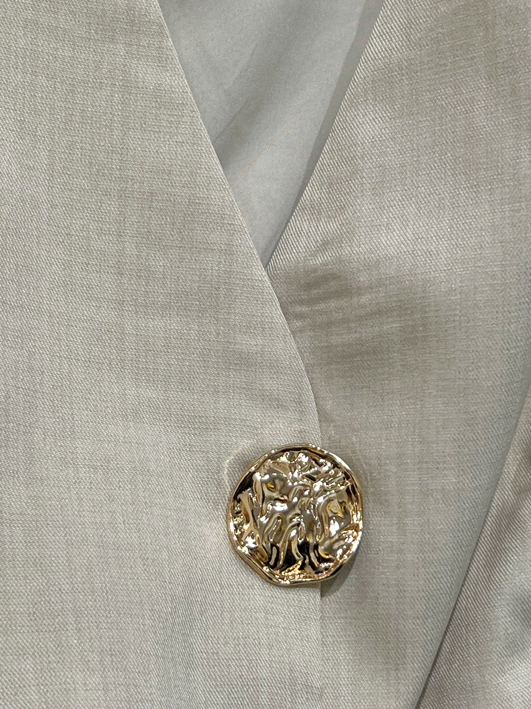 Two-piece set. V neck tailored waistcoat. Statement buttons. High waist wide-leg trousers. Front pleats. Elastic back waist.