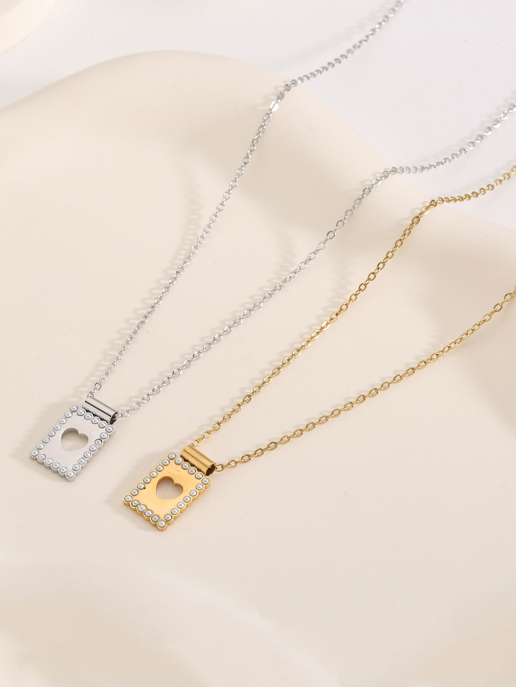 Details of heart chain necklace with pearl beads - stainless steel BS-DH62067-DH62068