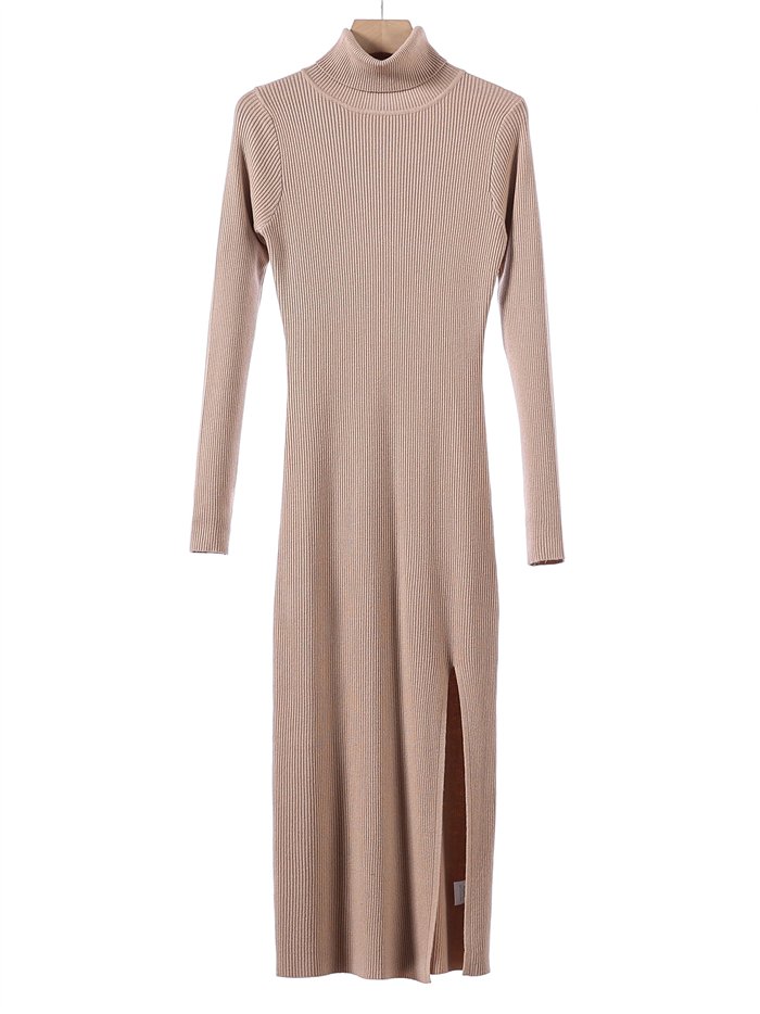 Details of roll neck ribbed knit dress with a vent DB-DA3562