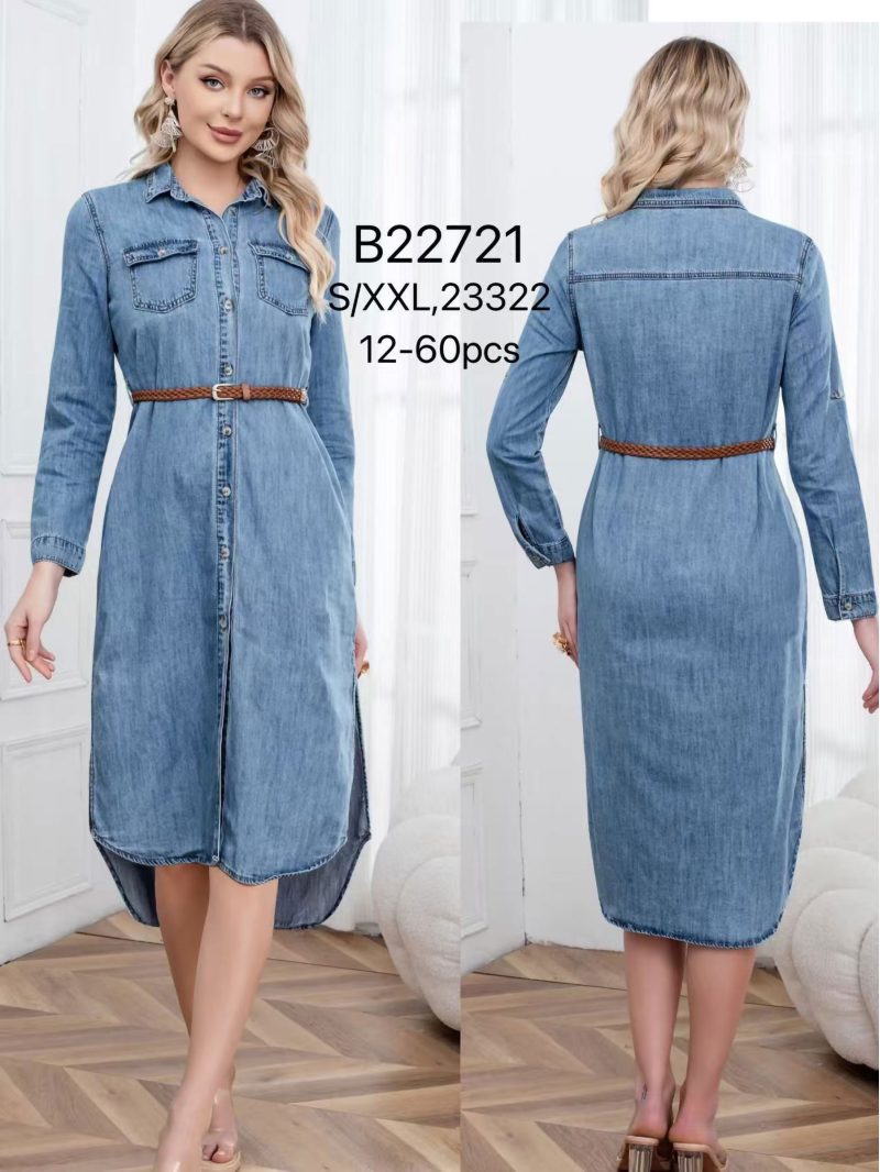 Midi denim shirt dress with belt