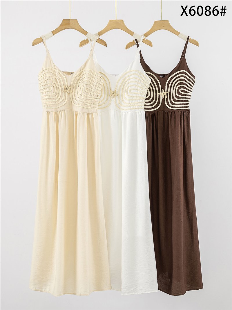 Linen maxi dress with seaside appliqué