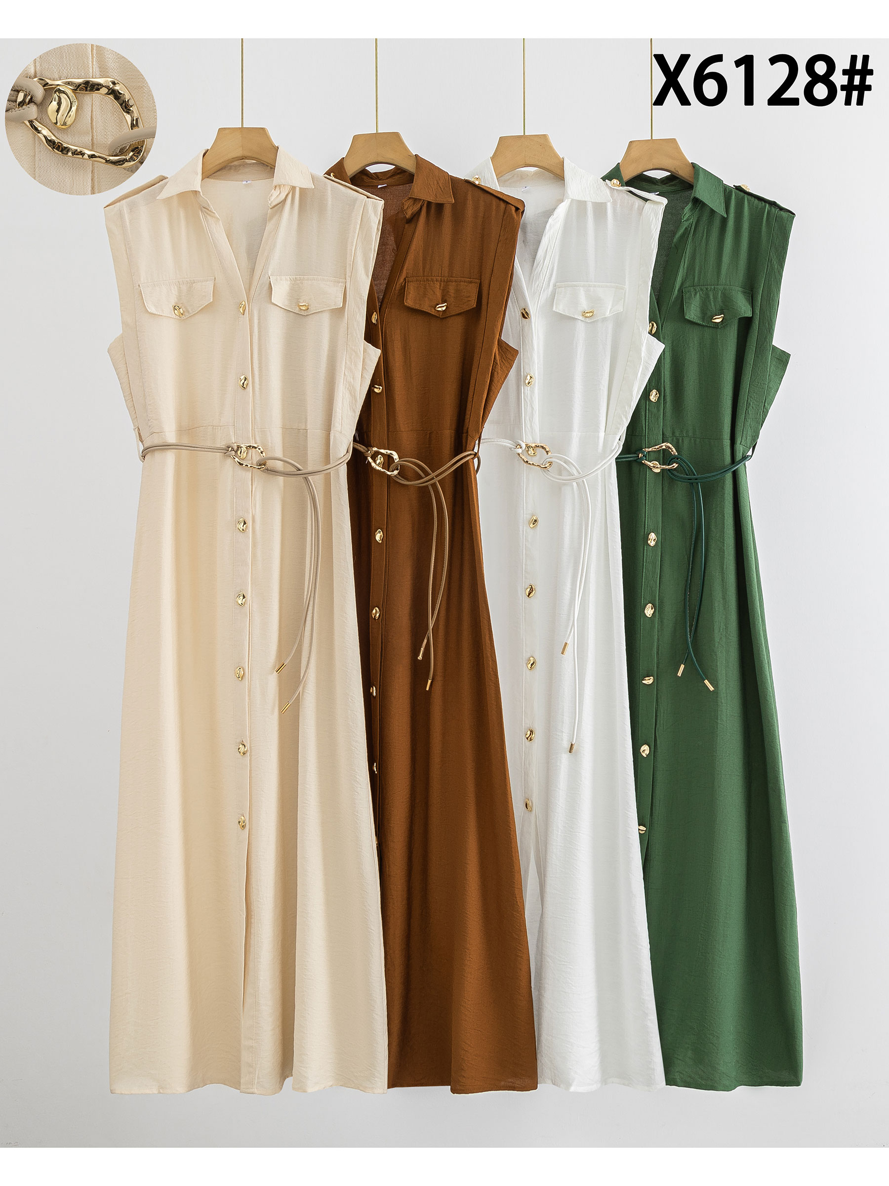 Sleeveless maxi shirt dress with cord belt