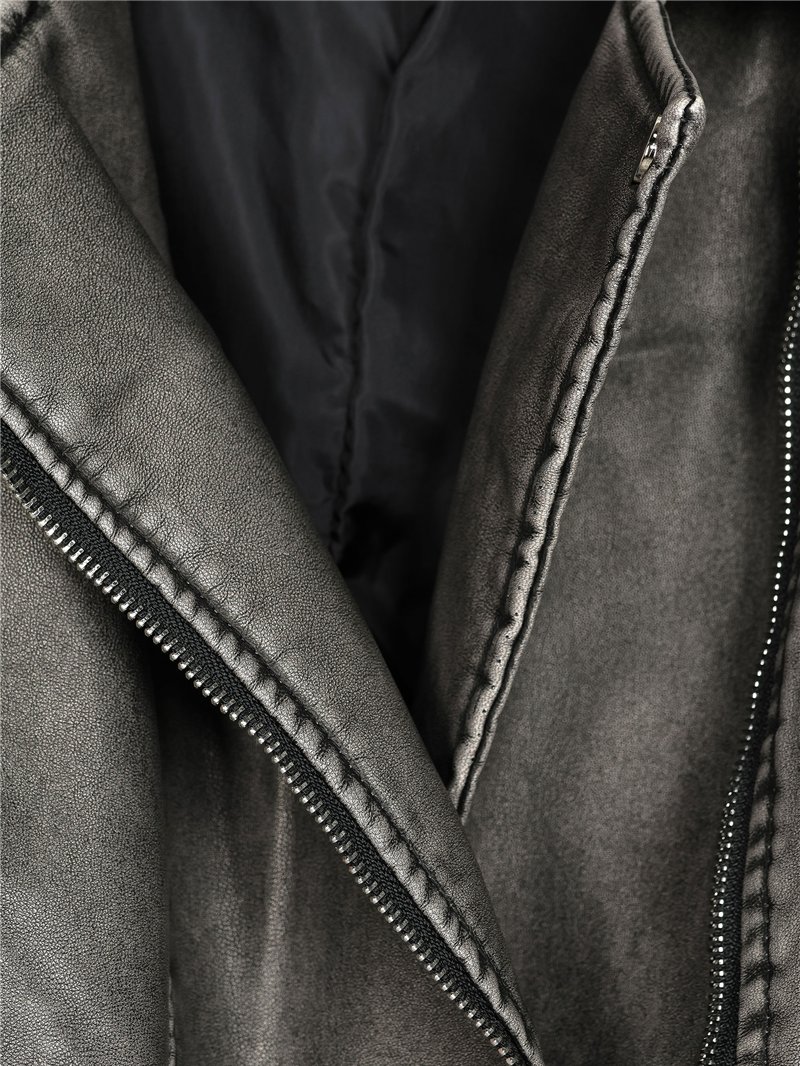 Details of faux leather biker jacket MF-MF6704-2-BROWN