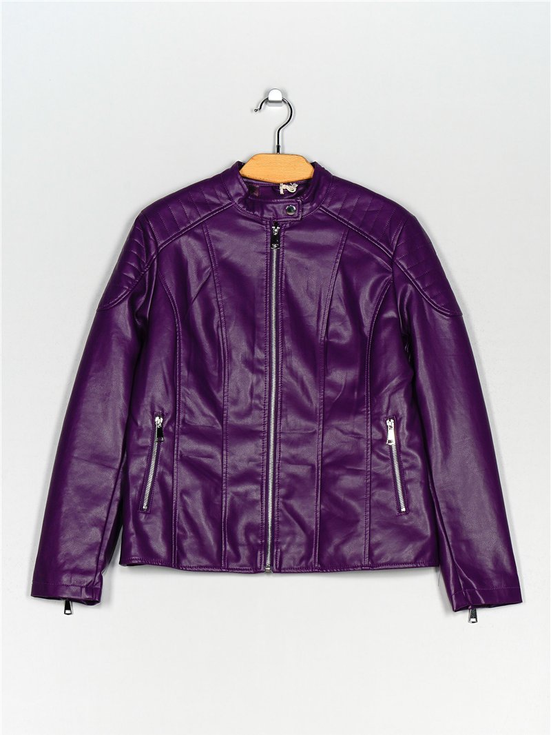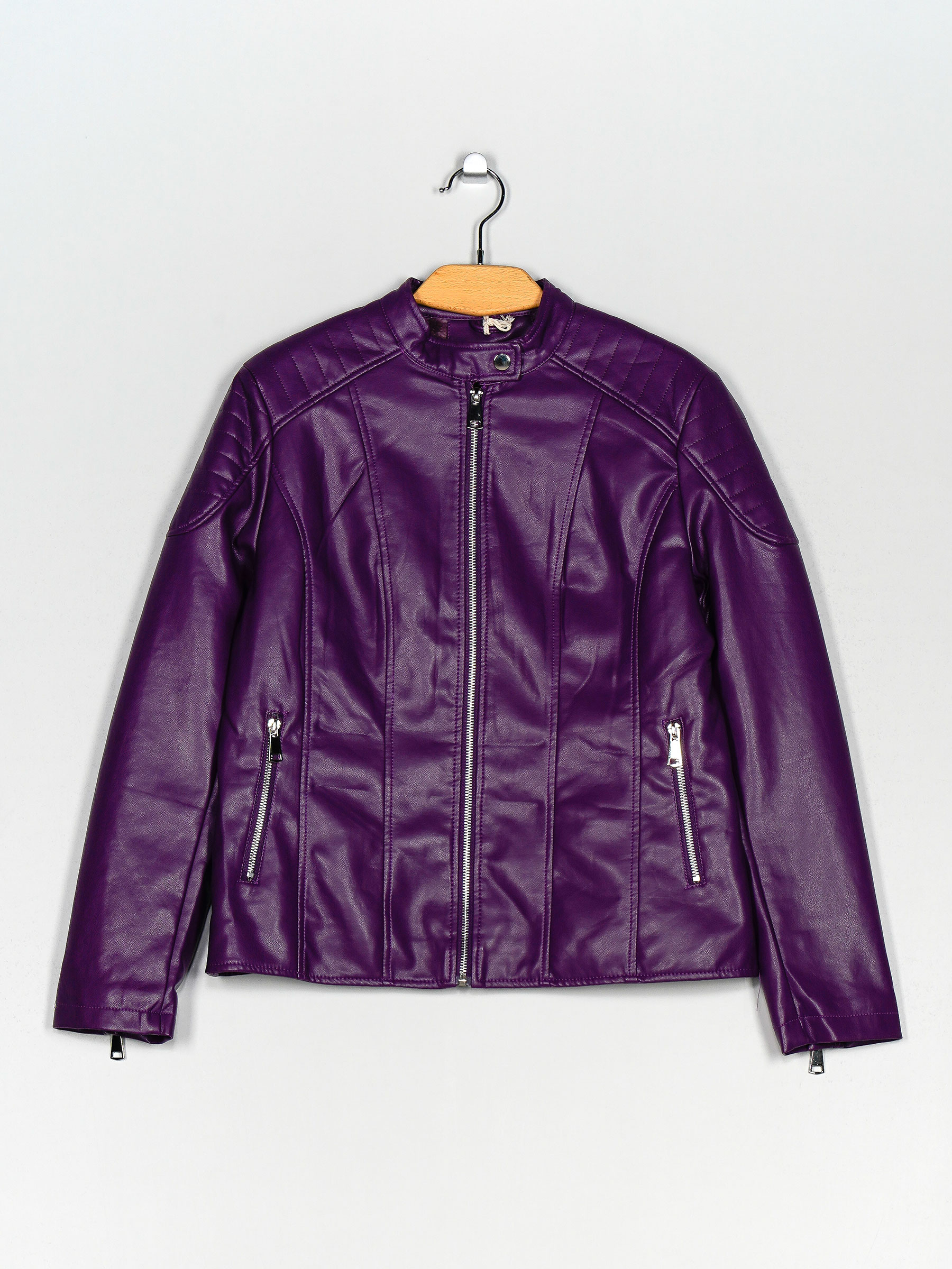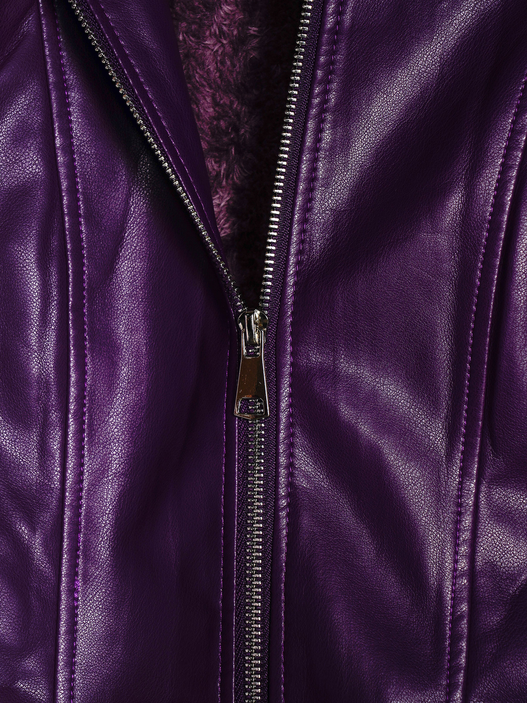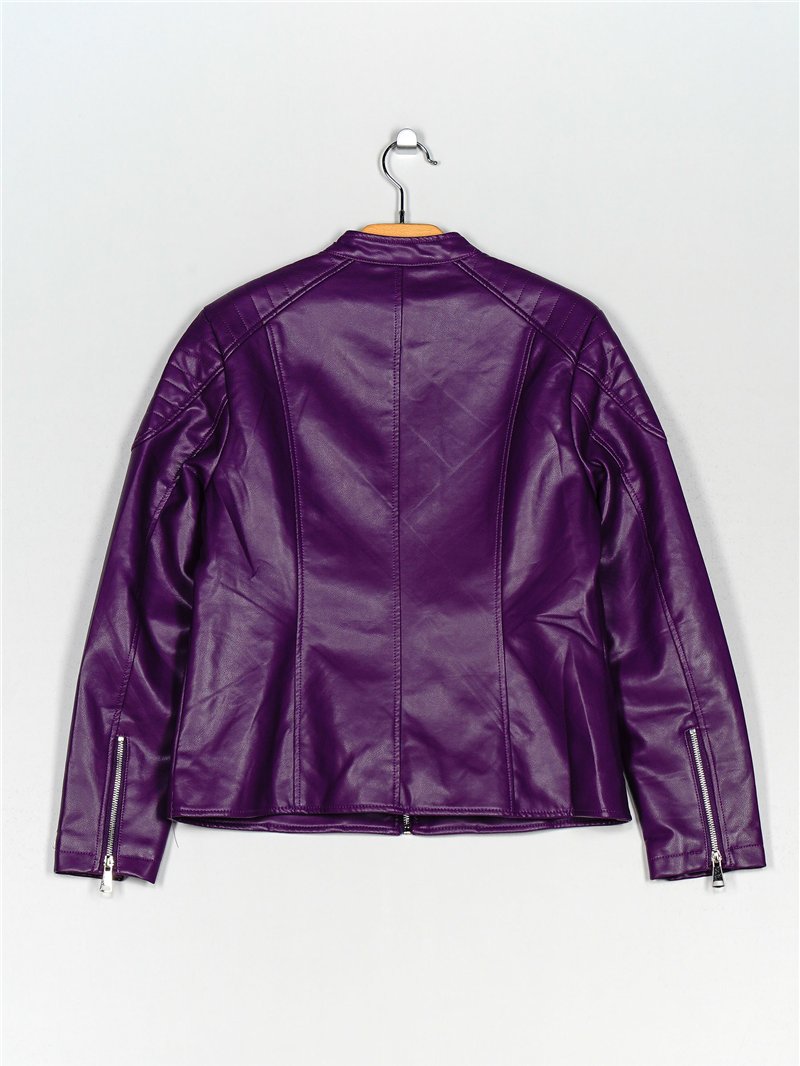 Details of faux leather jacket MF-16012-4-DEEP-PURPLE