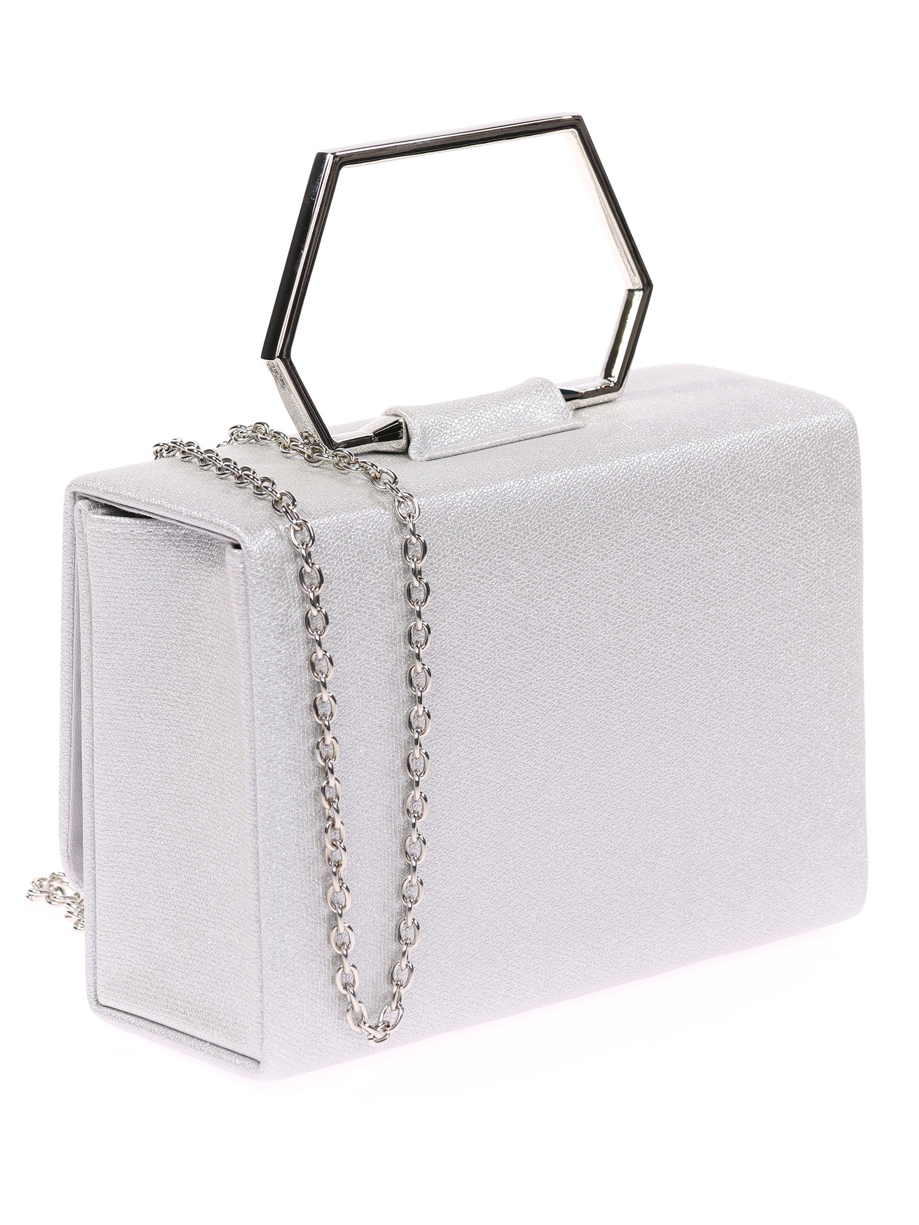 Clutch bag. Faux leather. Chain shoulder strap. Lined interior with pocket. Magnetic clasp closure.