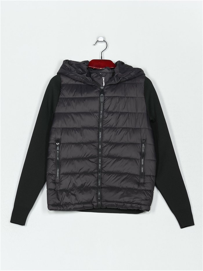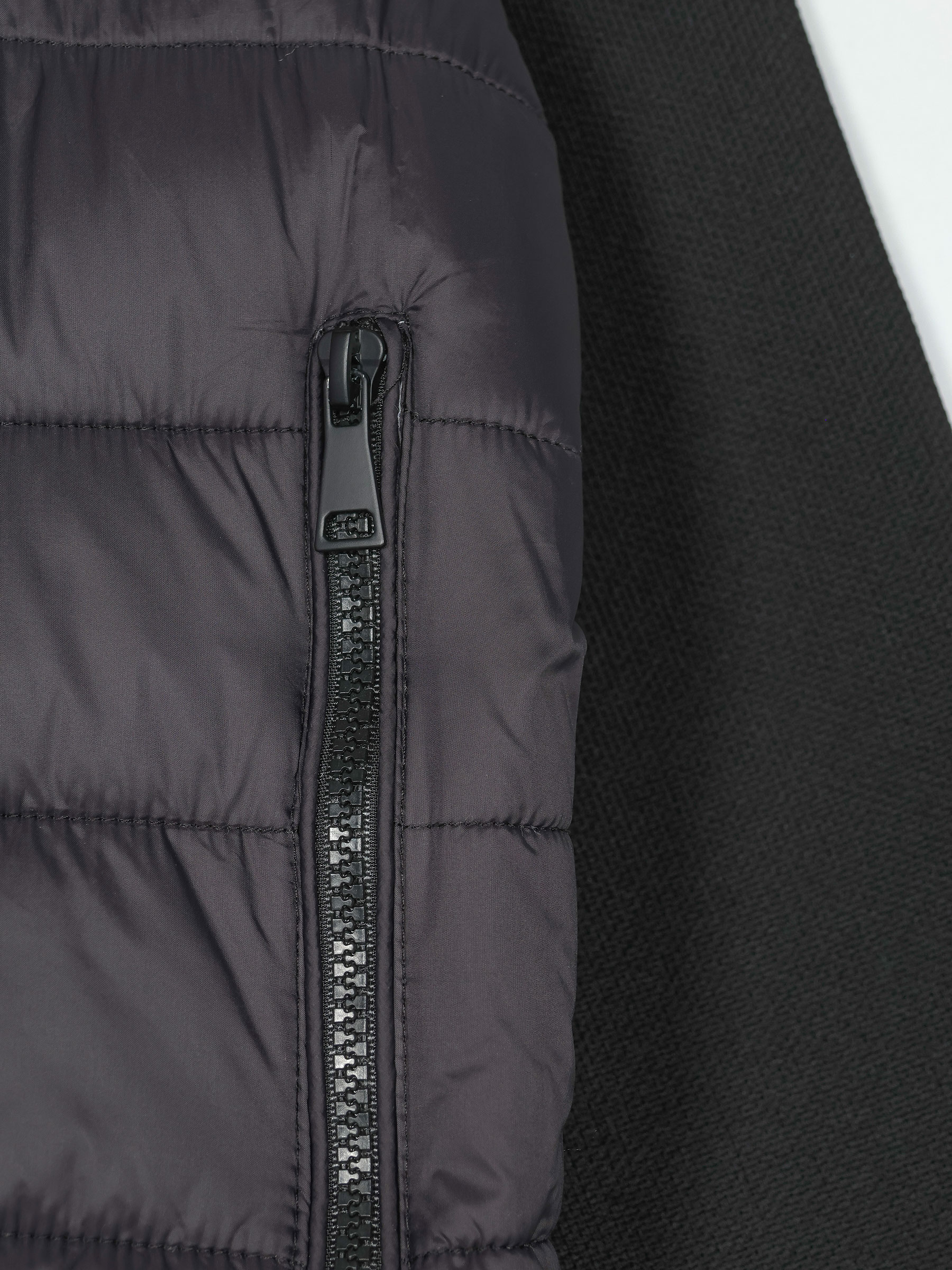 Details of quilted down puffer jacket with hood MF-AF-83207-1-BLACK