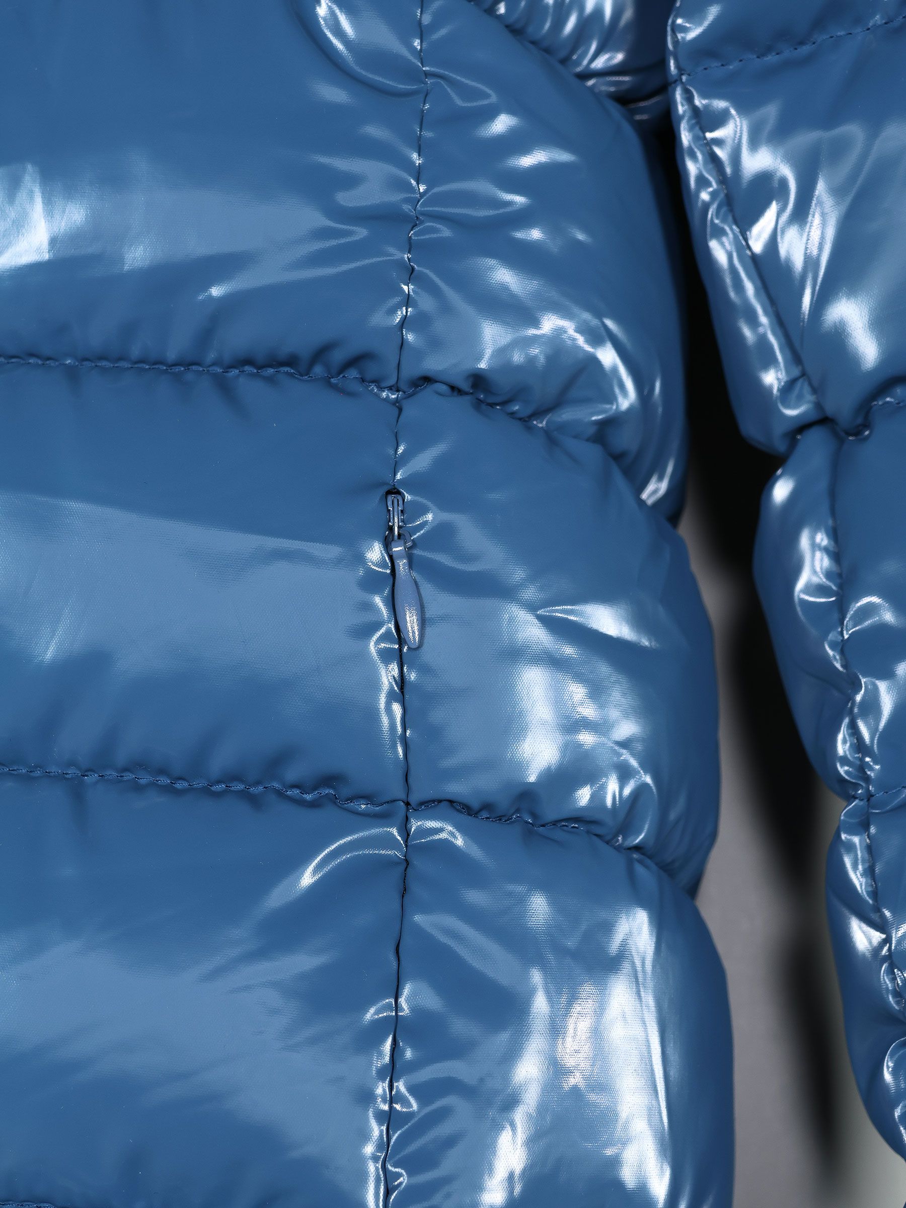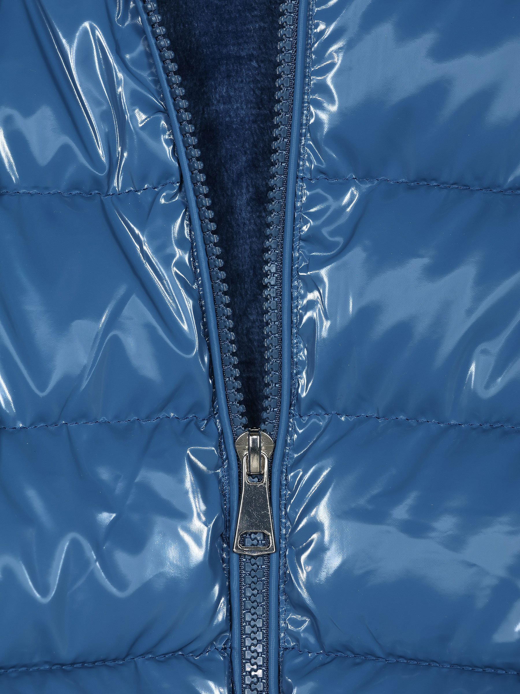 Details of fleece lined patent finish water repellent anorak with hood MF-AF-83152-78-NAVY