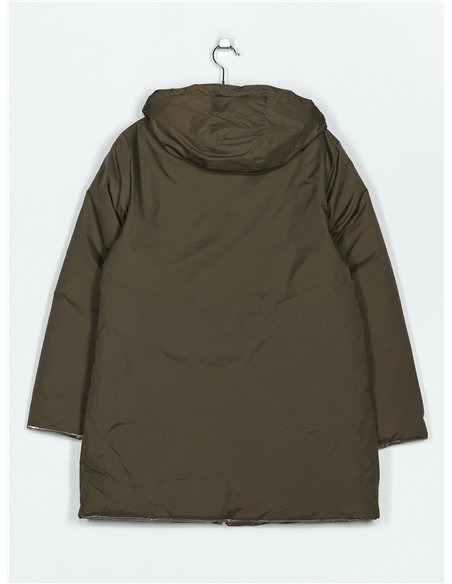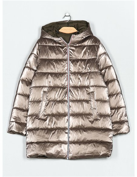 Details of oversized reversible metallic thread anorak with hood MF-MF006