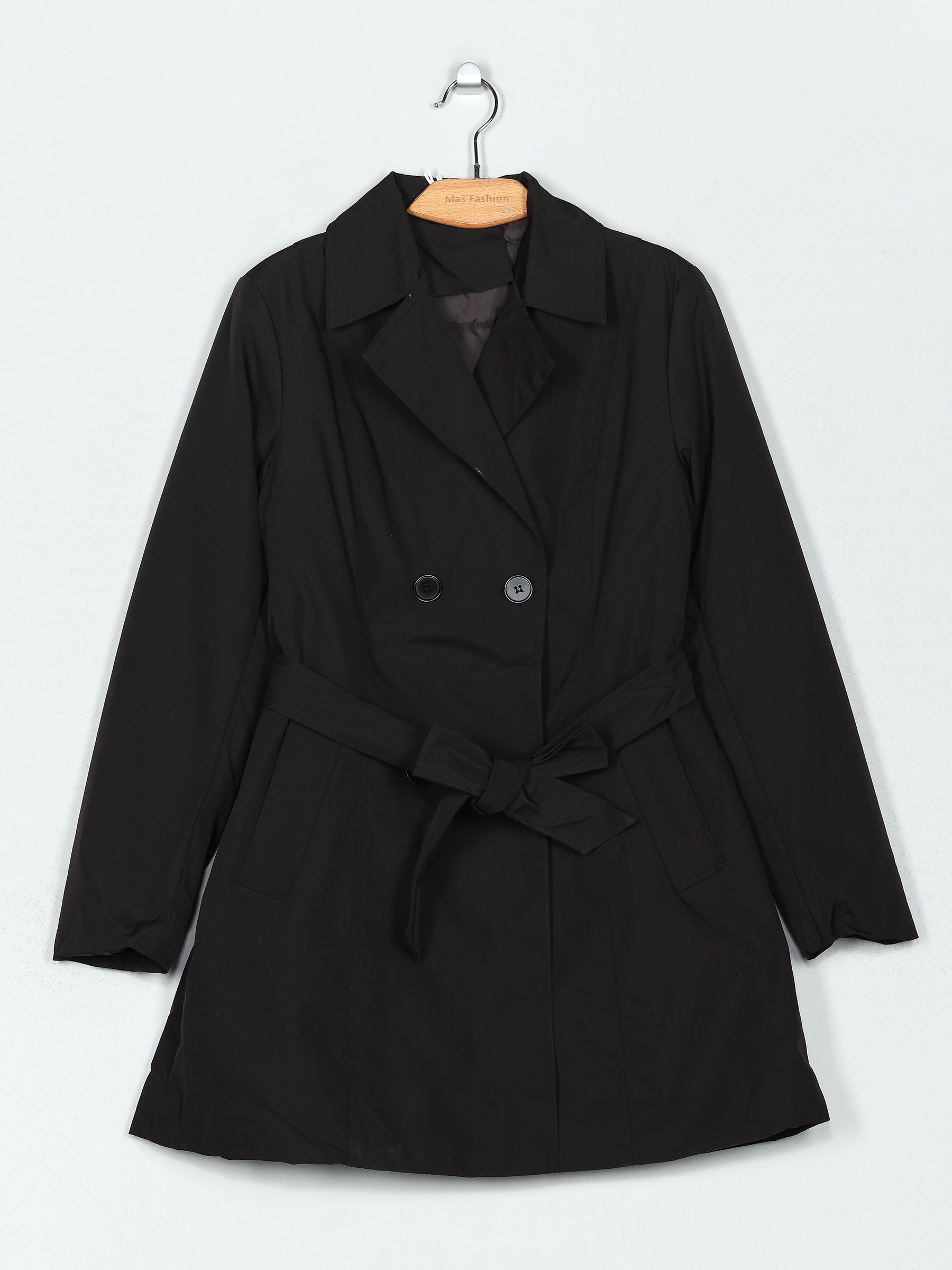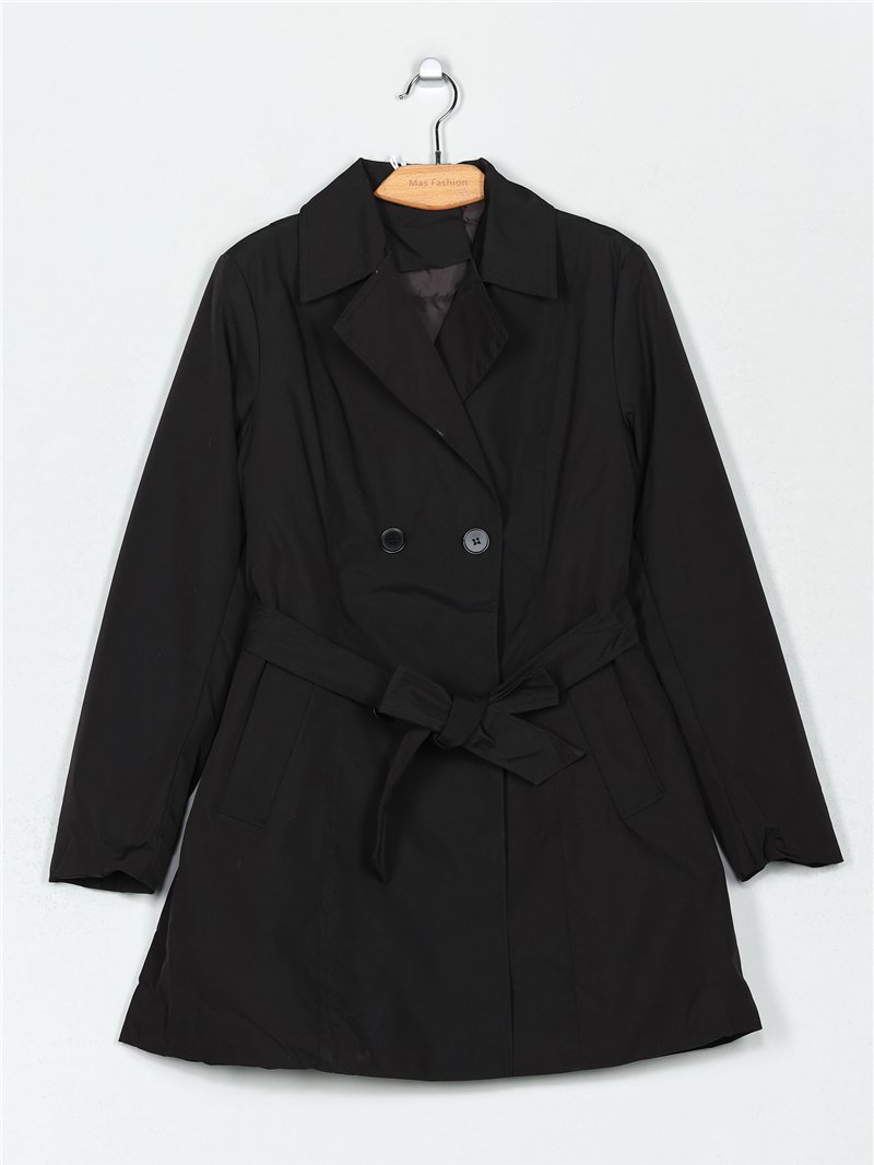 Details of quilted trench coat with belt MF-AF-83189-1-BLACK