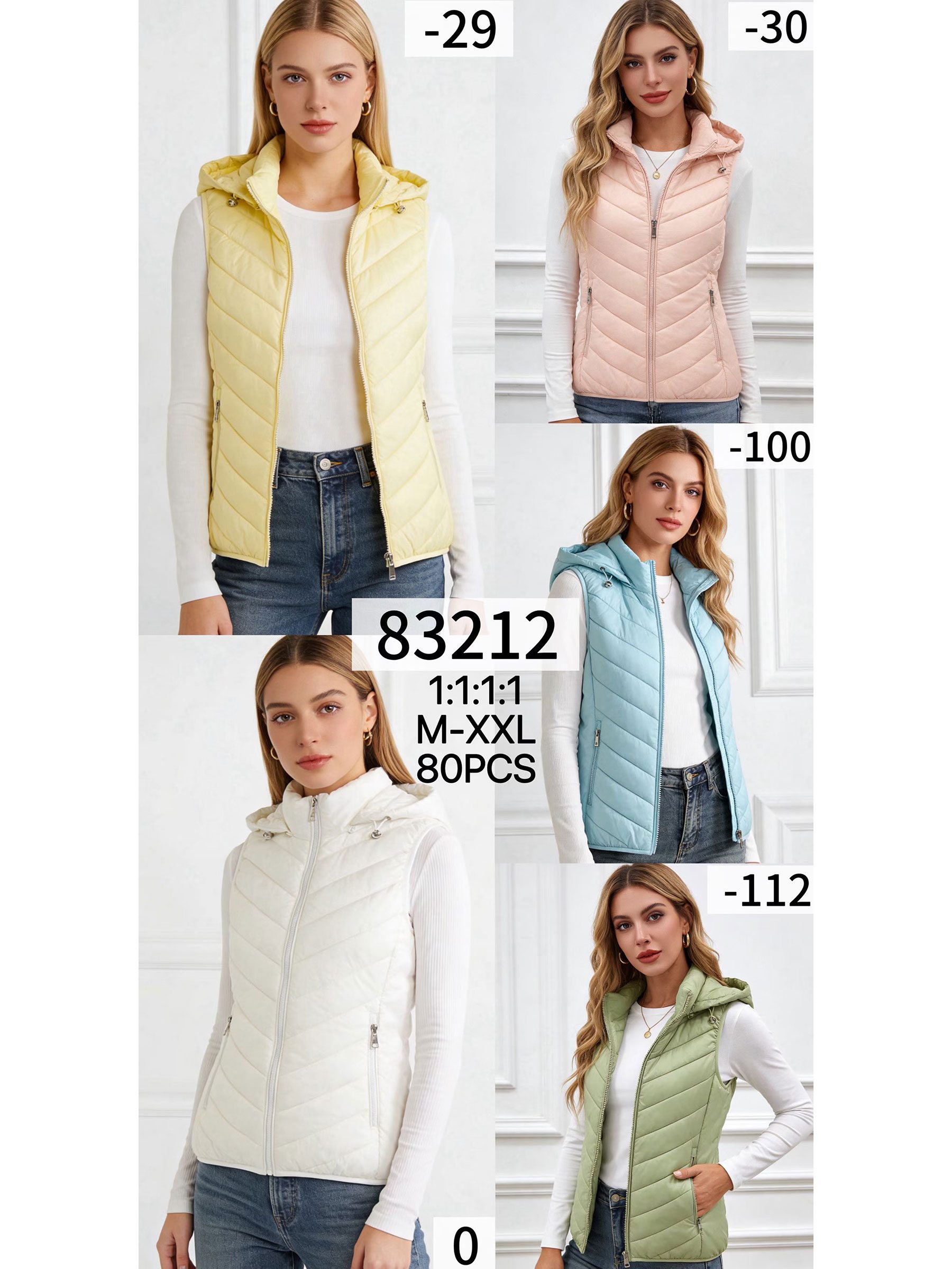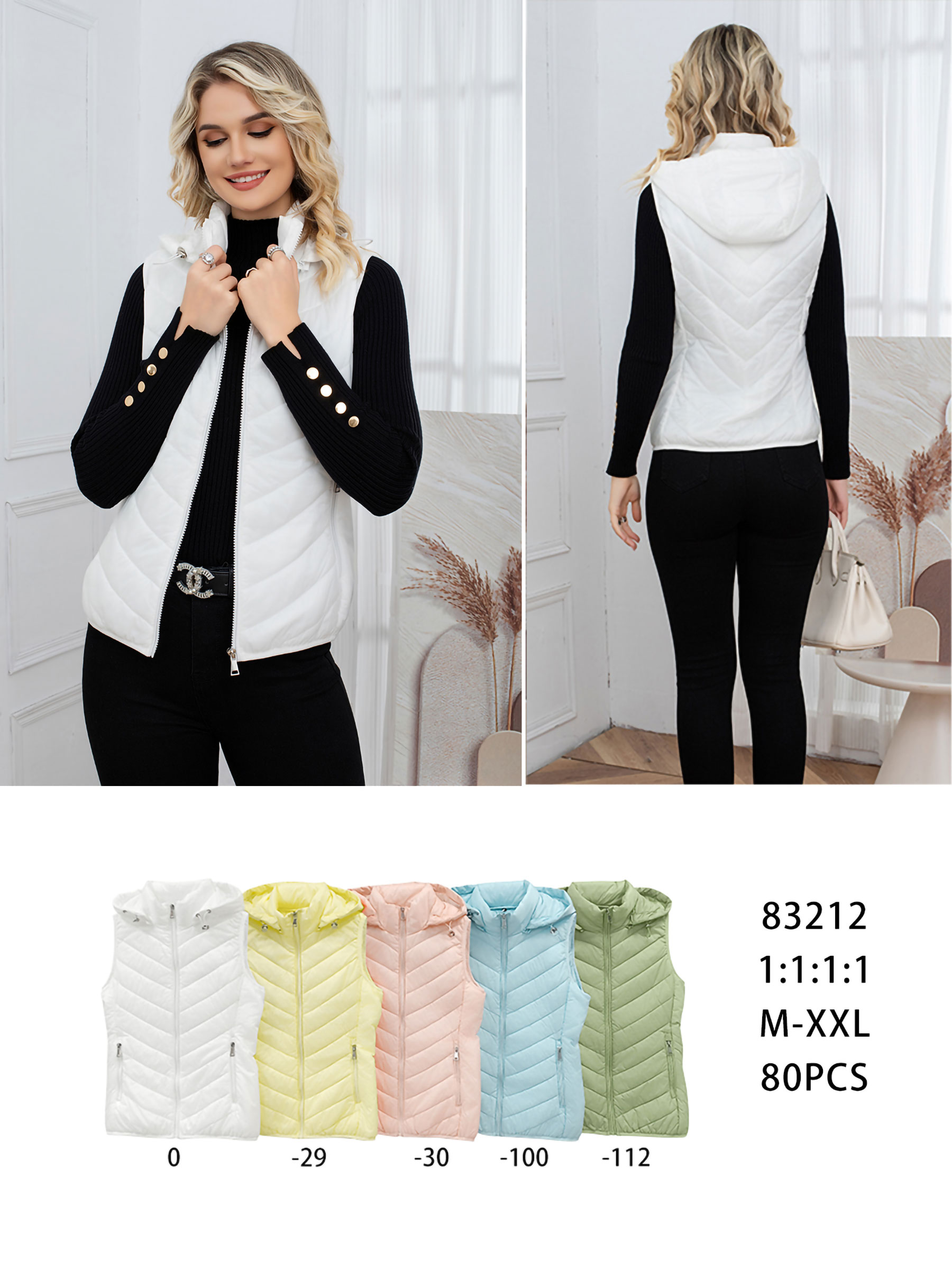 Details of lightweight hooded puffer waistcoat MF-AF-83212