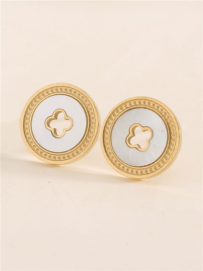 Details of round mother-of-pearl clover earrings - stainless steel BS-QK1599-QK1600