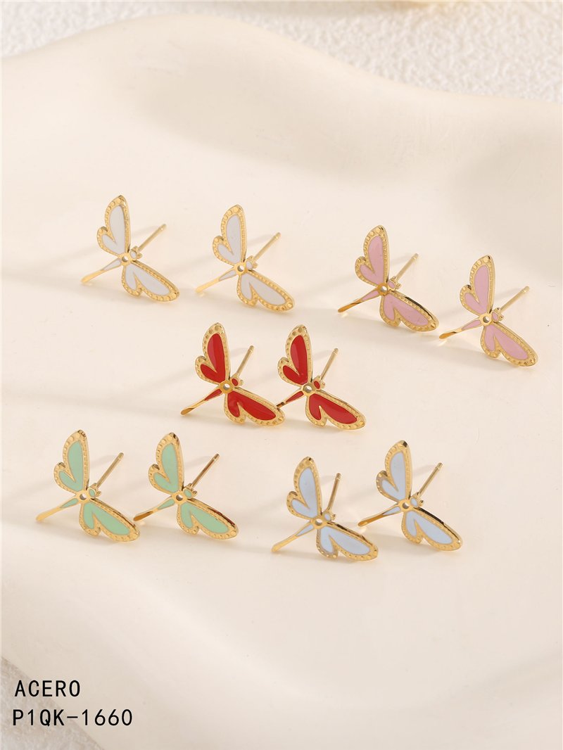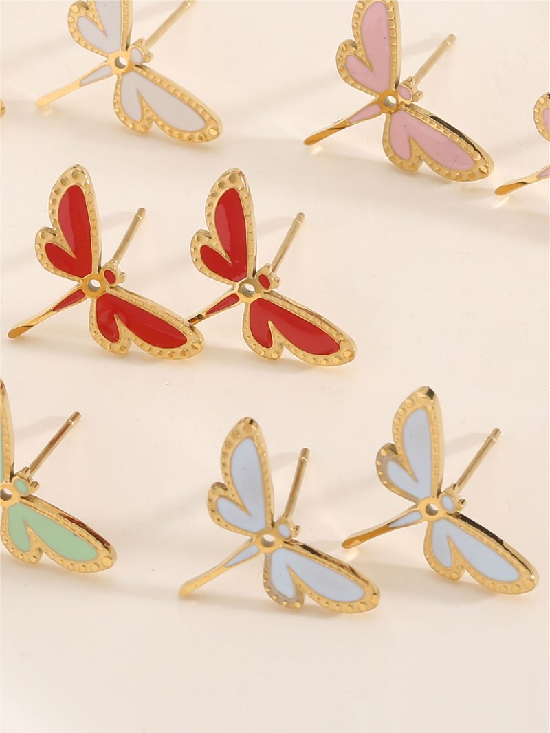 Enameled dragonfly earrings. Stainless Steel. Assorted colors.