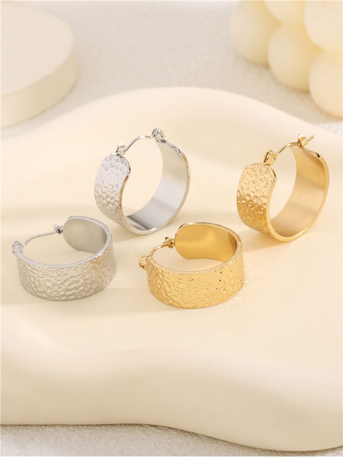 Details of hammered effect hoop earrings - stainless steel BS-YS135-YS136