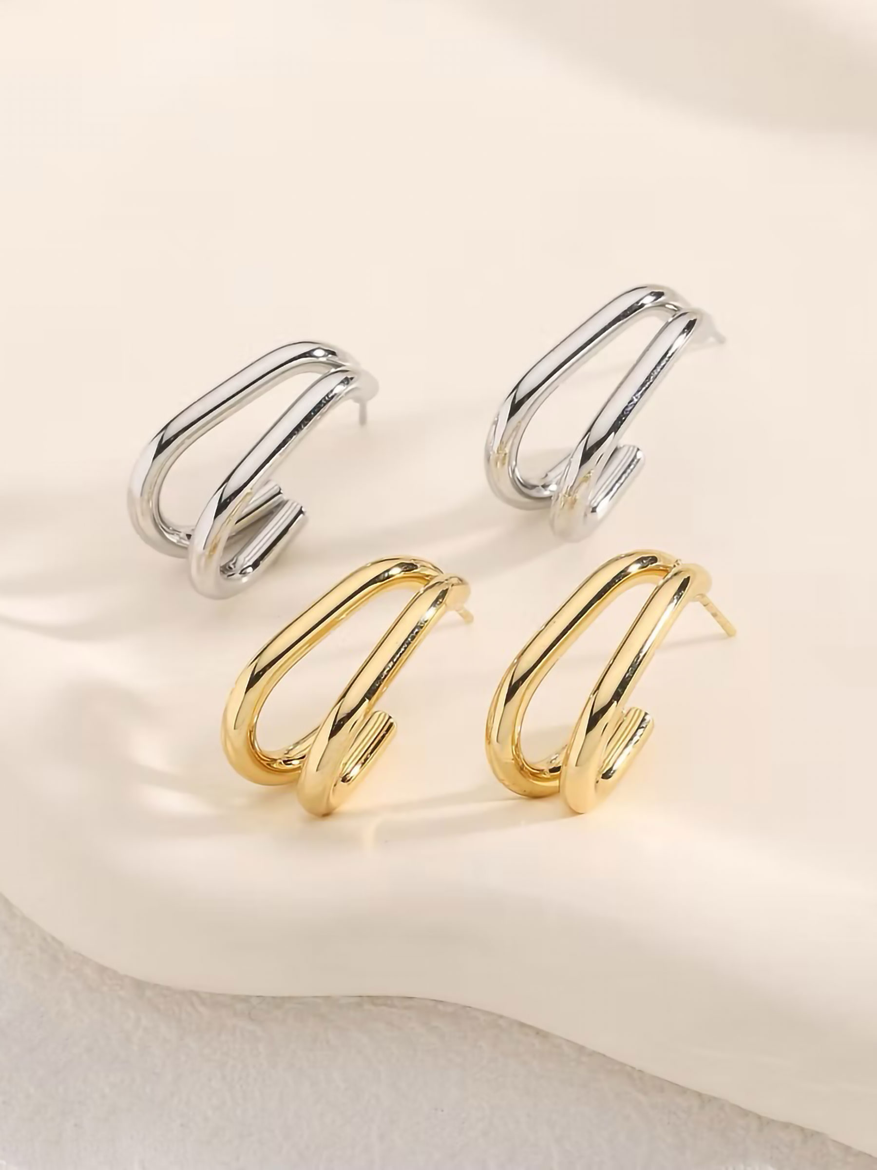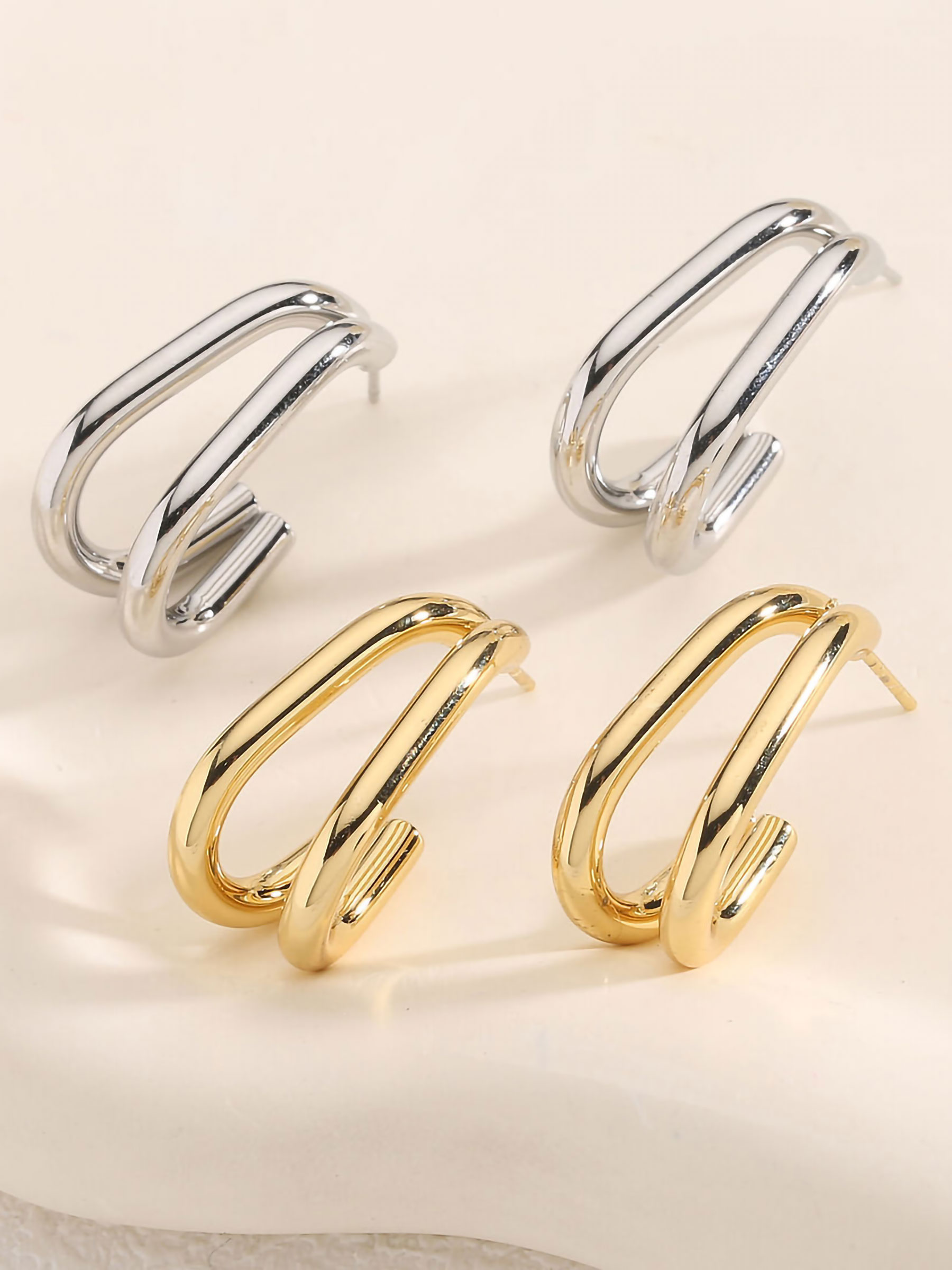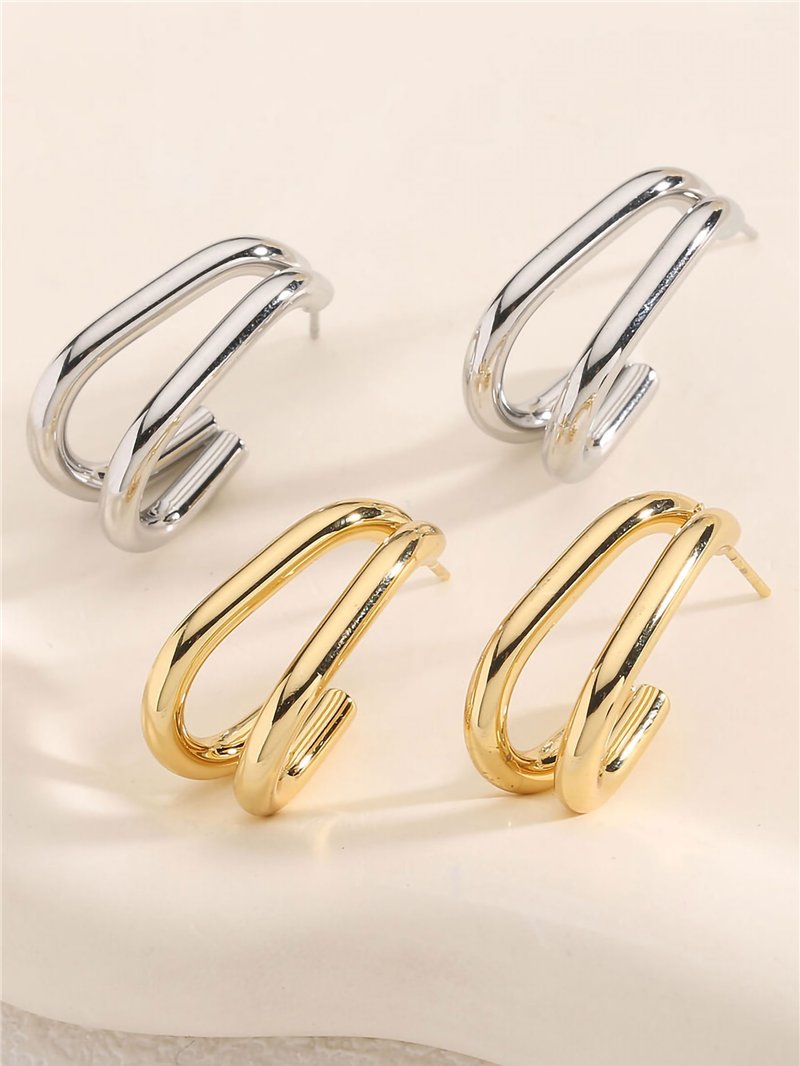 Double effect elongated hoop earrings - Stainless Steel