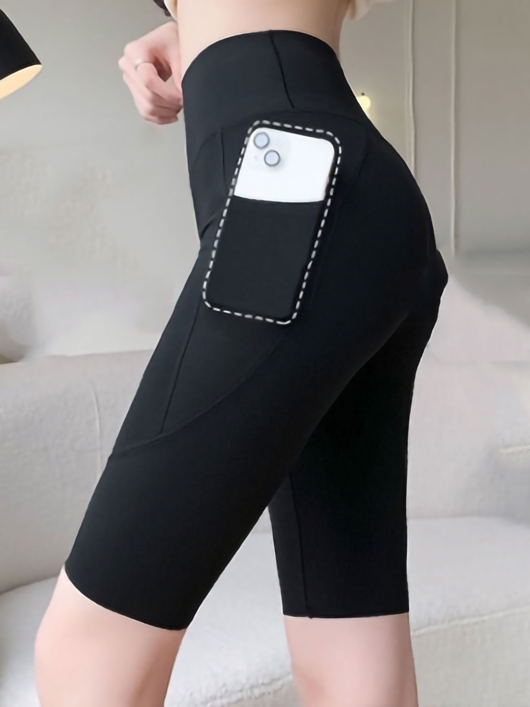 High waist soft touch biker leggings with pocket and comfortable elastic waistband.