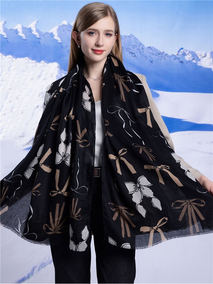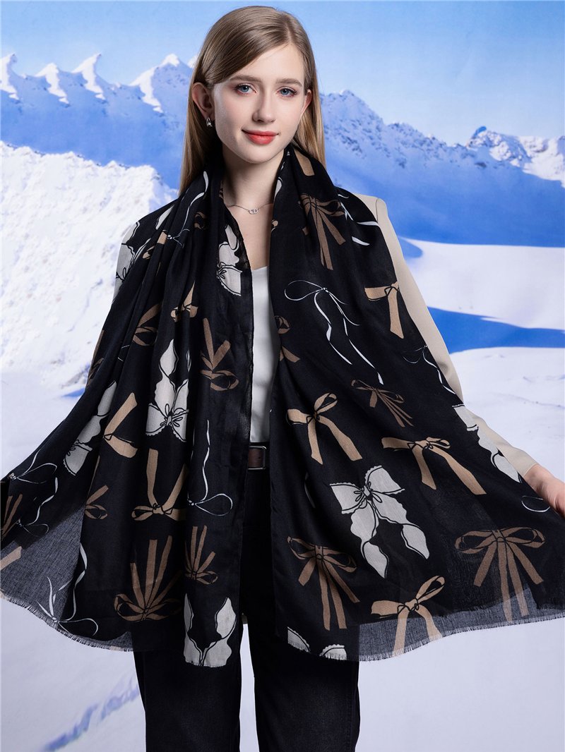 Scarves and Handkerchiefs Cats printed scarf with fringing AD-B2526 Soft-touch printed scarf with fringe appliqués.Measures: 68 X 180 CM. See price