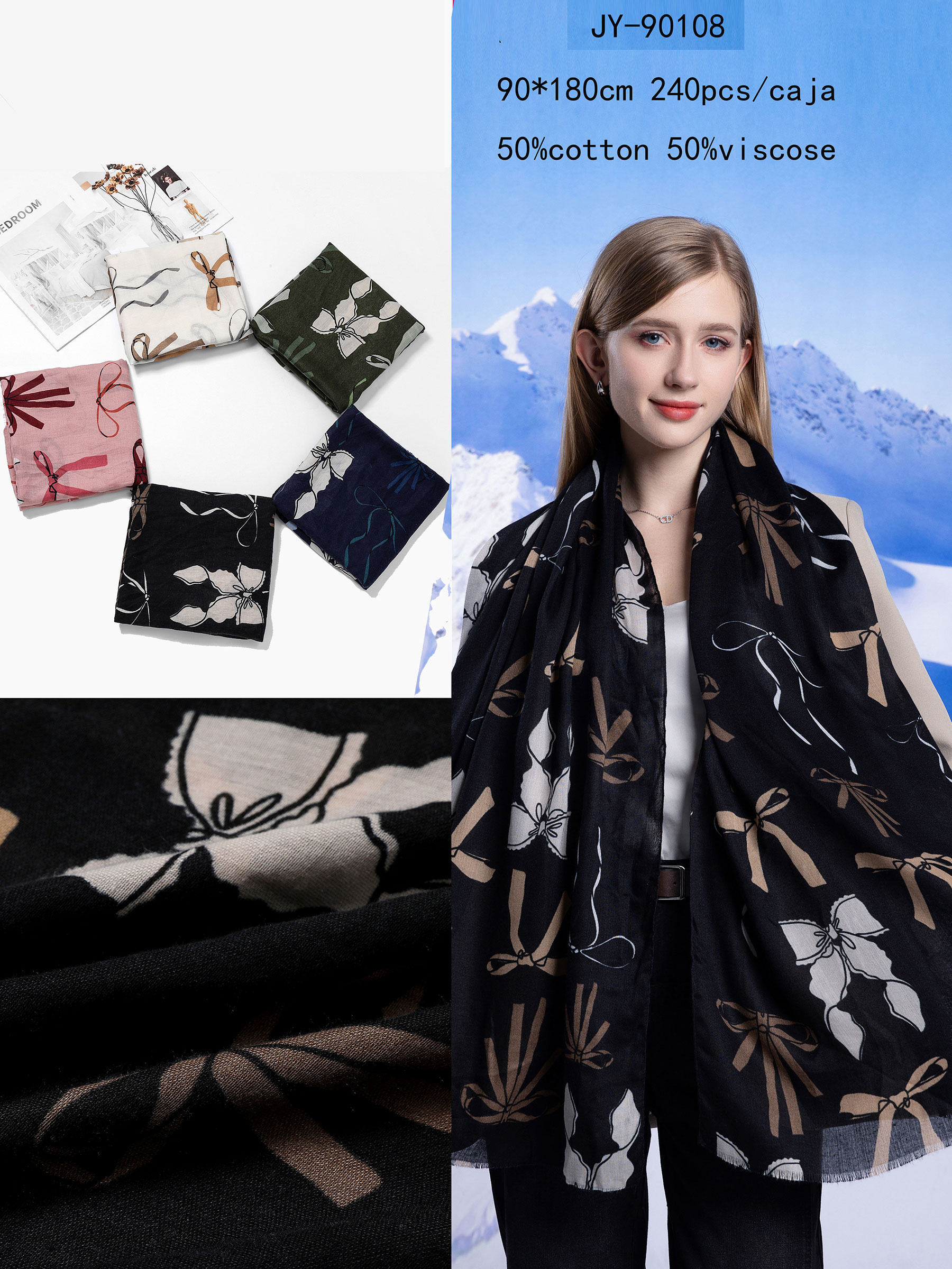 Min. 12 Scarves and Handkerchiefs Floral print scarf with fringing and rhinestone HY-HW-20423 Floral printed scarf with fringe appliqués and rhinestone-appliqué.Measures: 70 X 180 CM. See price