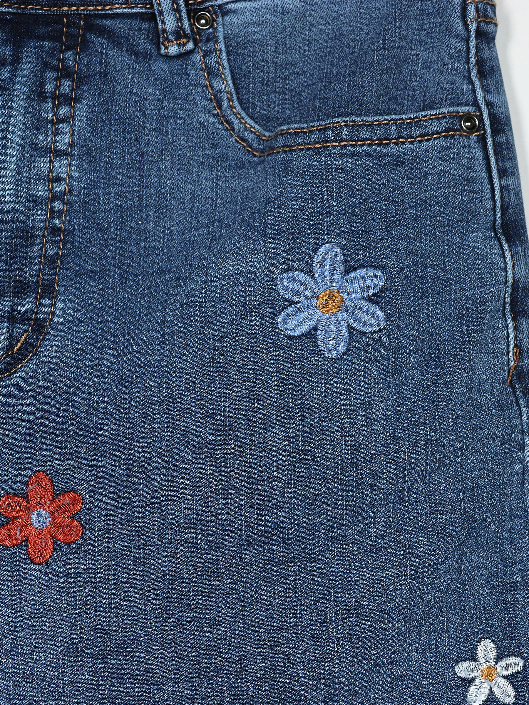 High waist embroidered bermuda shorts. Featuring a five-pocket design and zip fly and metal top button fastening in the front.