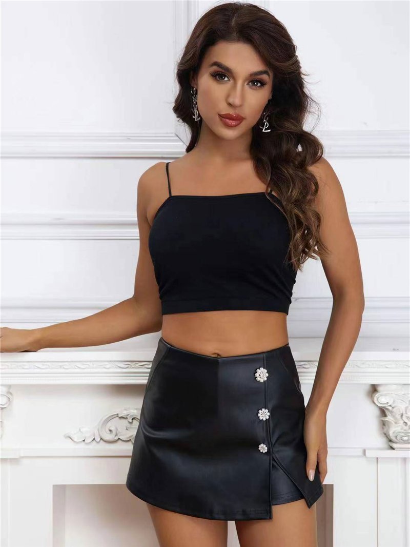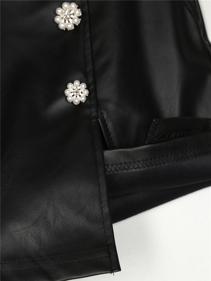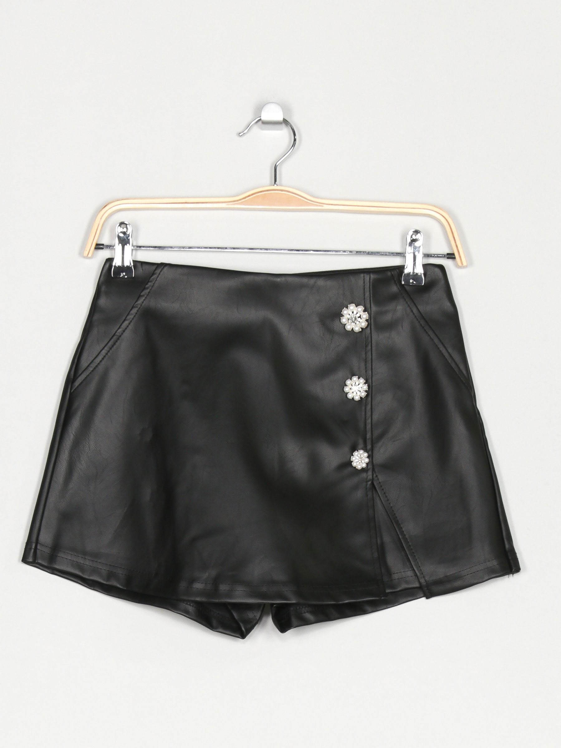 Details of faux leather shorts skirt with beads buttons MP1183-V5590