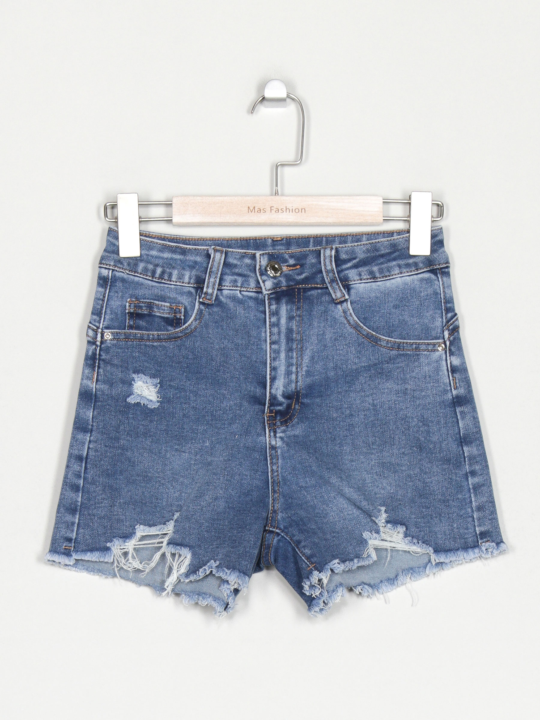 High waist ripped denim shorts. Push up. Frayed trims, featuring a five-pocket design and zip fly and metal top button fastening in the front.