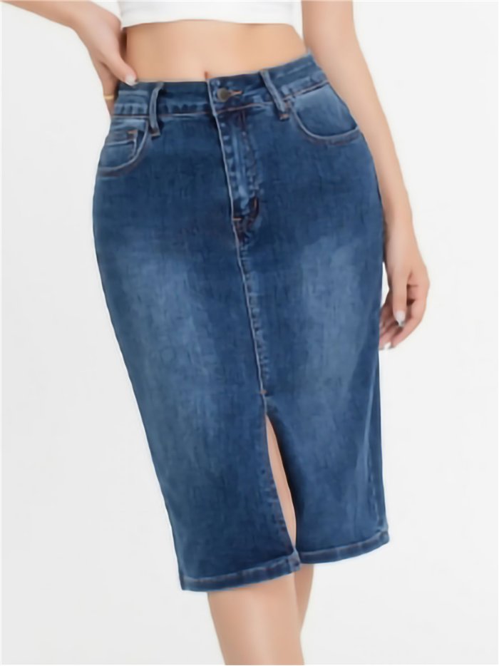 Details of denim midi skirt with a vent MF-B22459