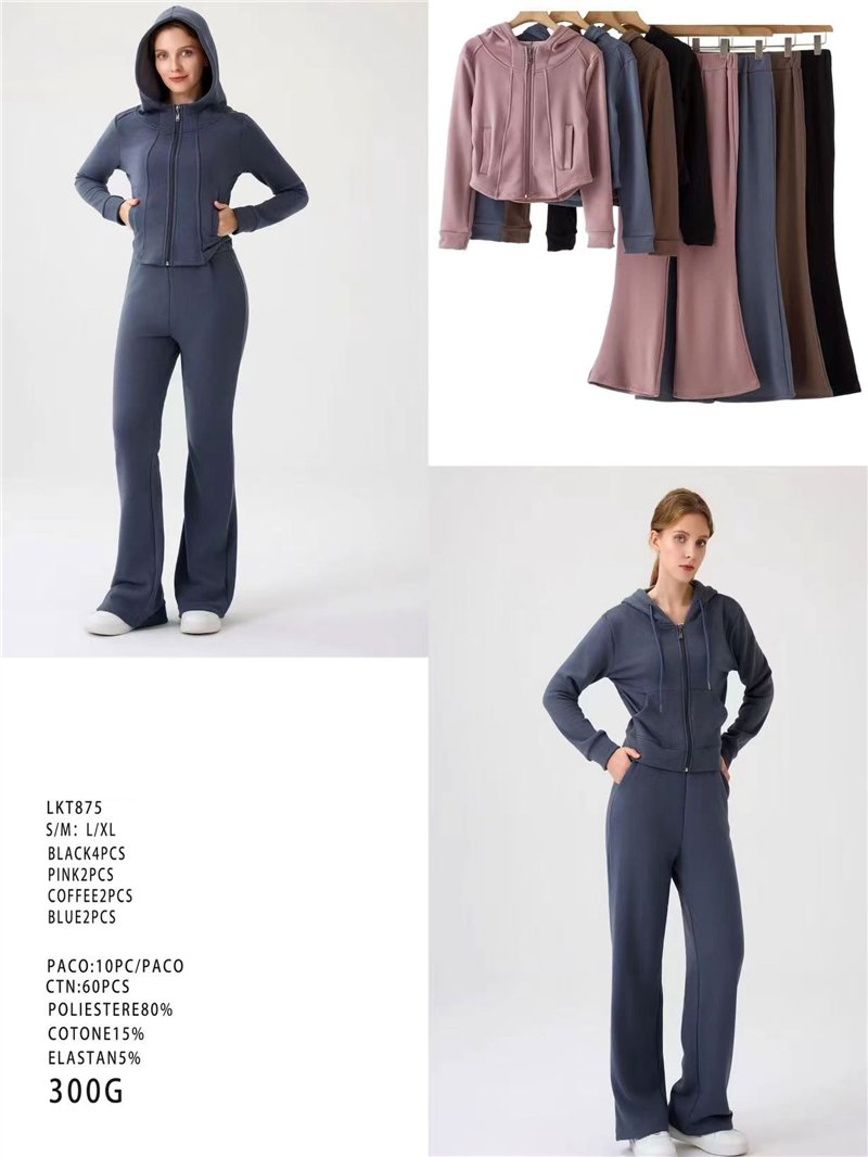 Details of co-ord fleece hooded zip-up sweatshirts + flare trousers LS-LKT875