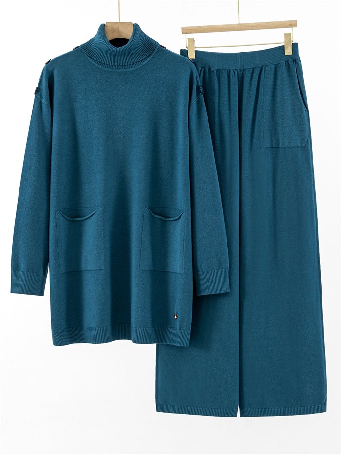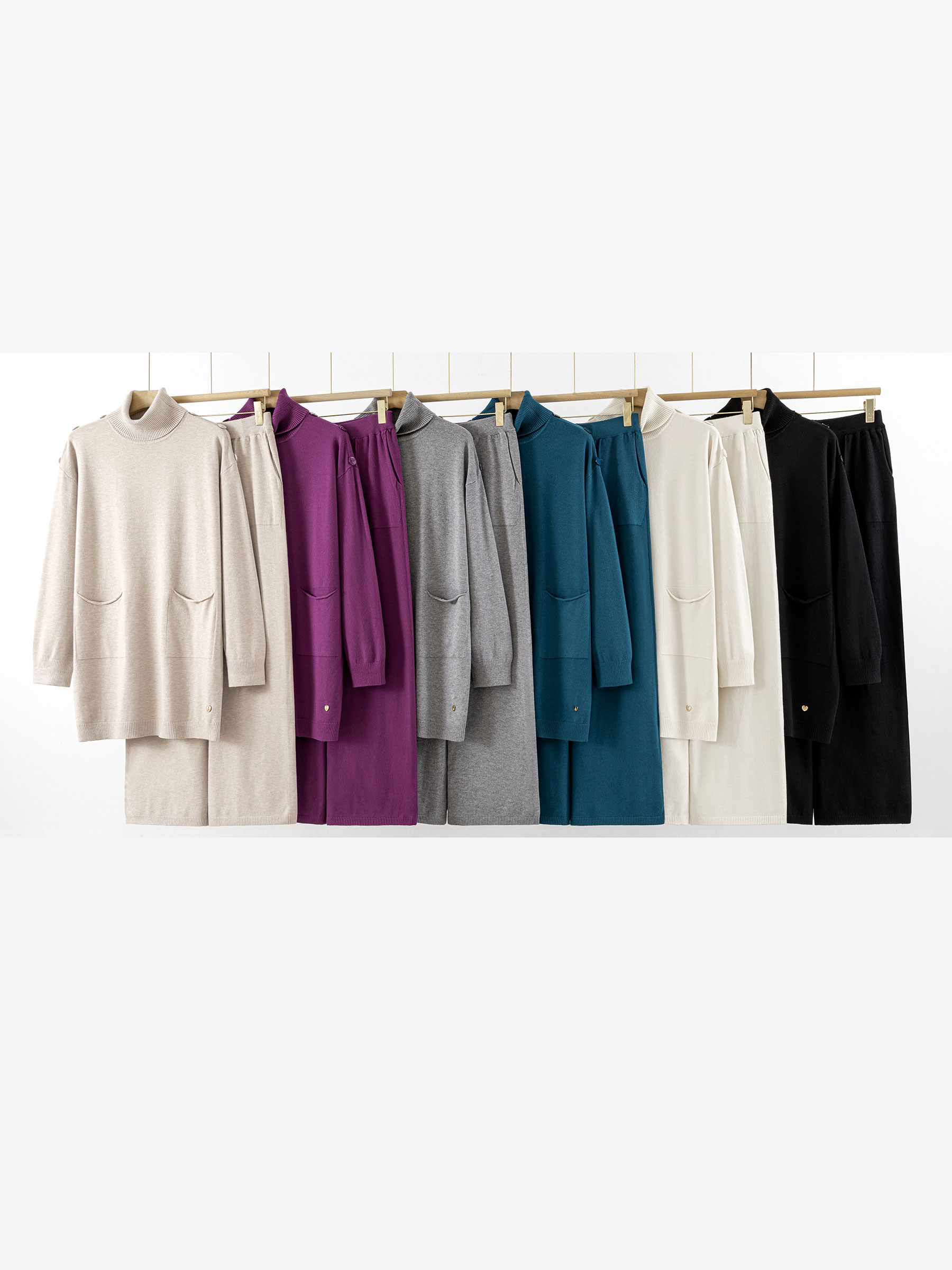 Co-Ord Roll neck long knit sweater + Wide-leg trousers