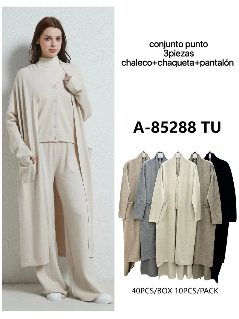 Details of co-ord cardigan + knit waistcoat + trousers LS-A85288