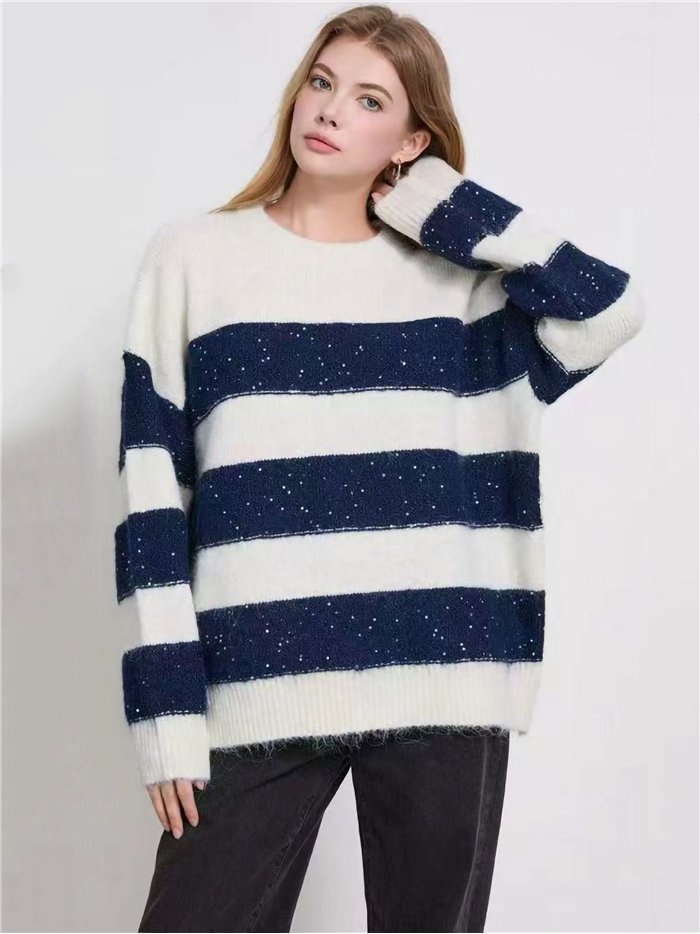 Details of striped sweater with sequins LS-B85711