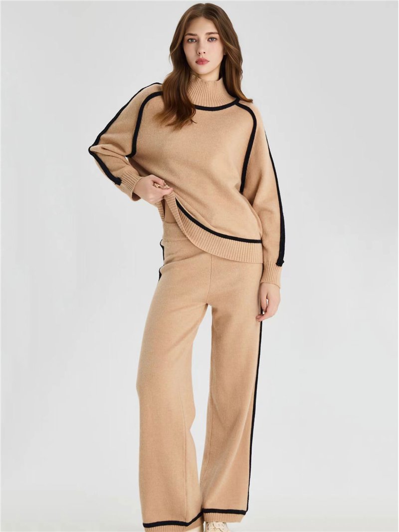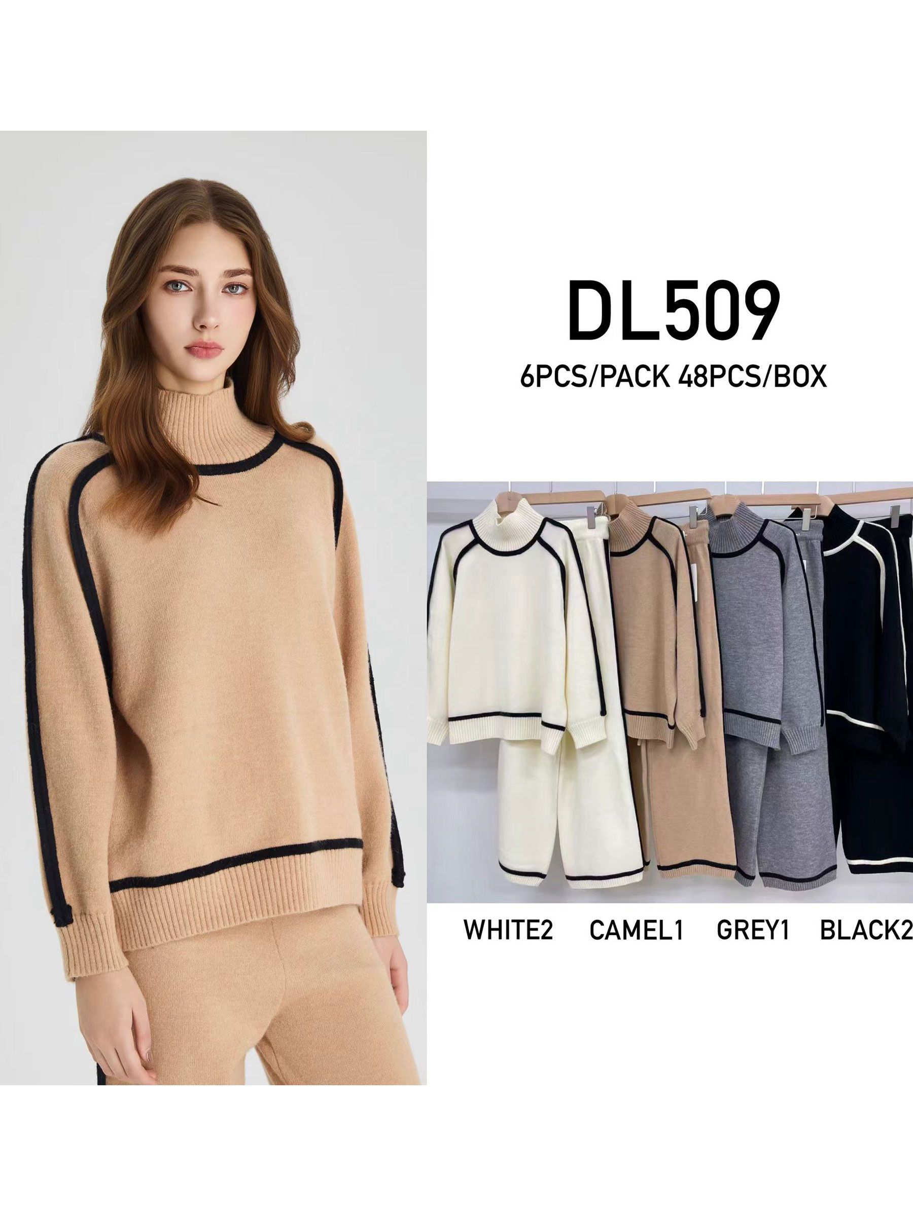 Details of co-ord contrast knit sweater & trousers LS-DL509
