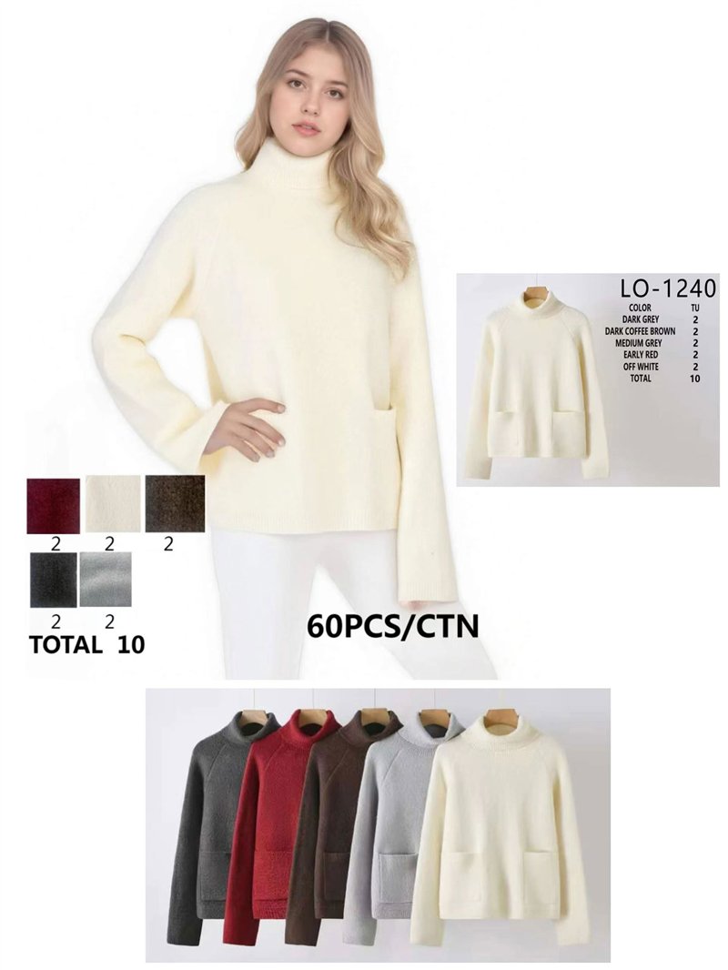 Details of roll neck warm knit sweater with pockets LS-LO1240