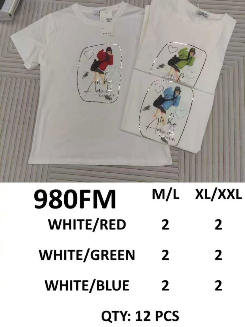 Min. 10 T-shirts Heart graphic t-shirt with rhinestone JS-ANE8839 Collection: Spring/Summer 2026 See price