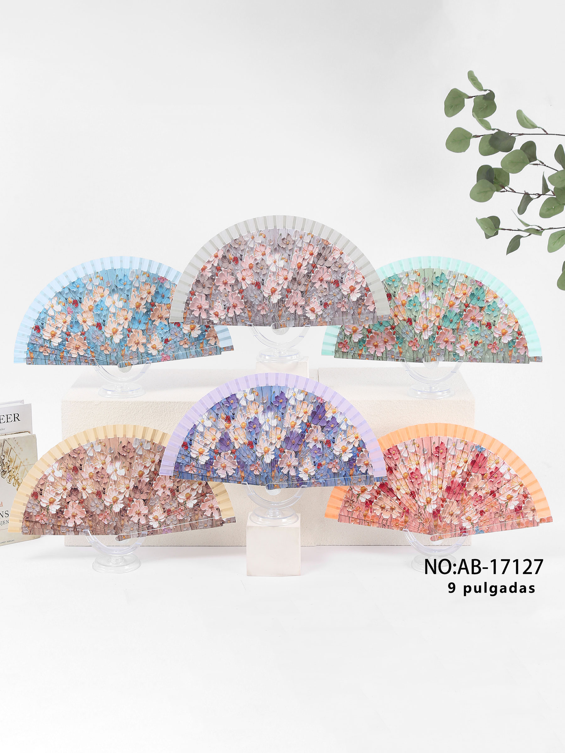 Abanico estampado flores pastel