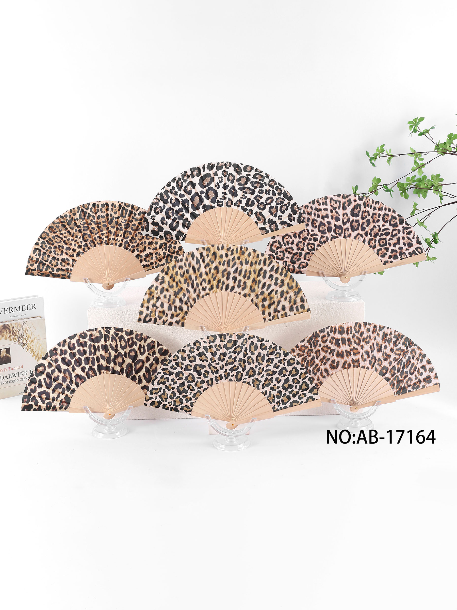 Abanico madera leopardo clásico
