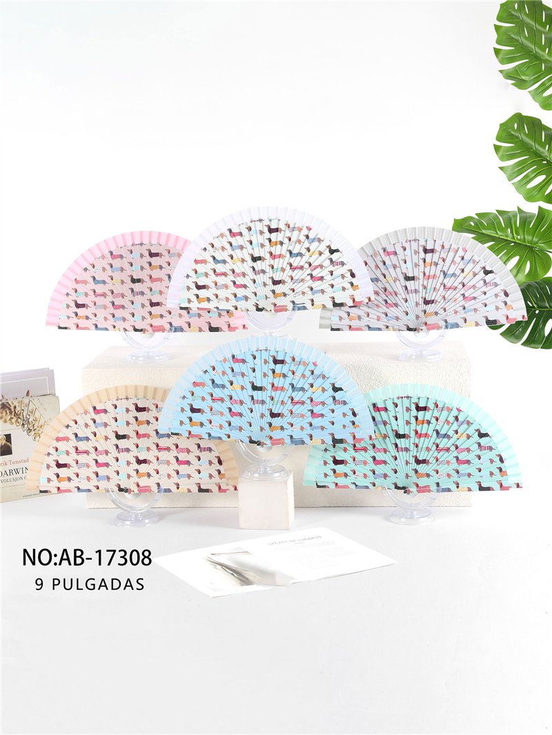 Abanico madera estampado. 1 cara. 9 pulgadas. Colores surtidos.