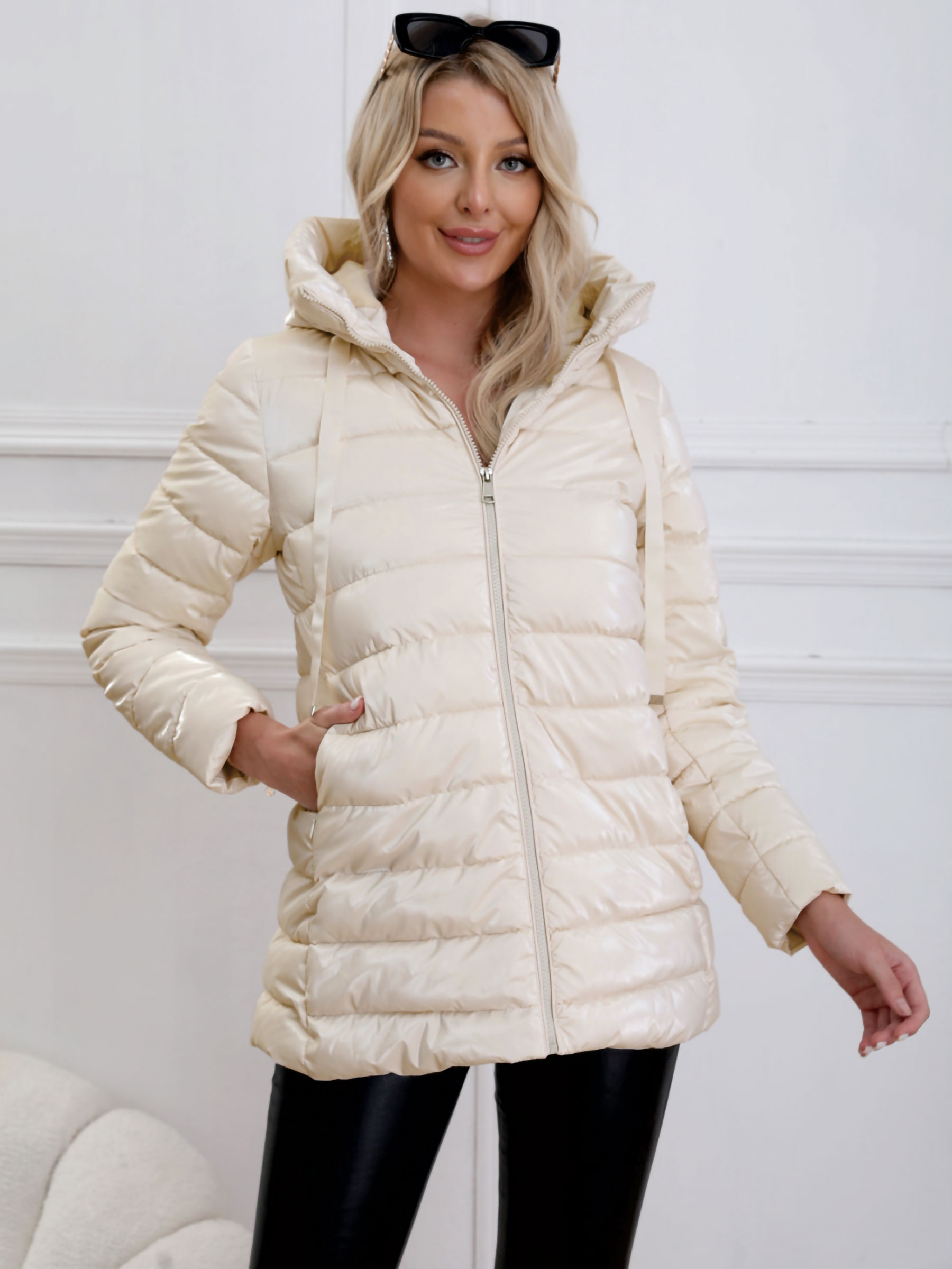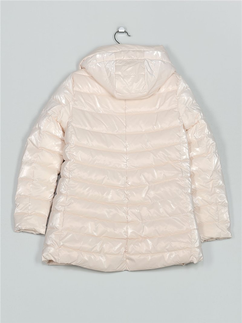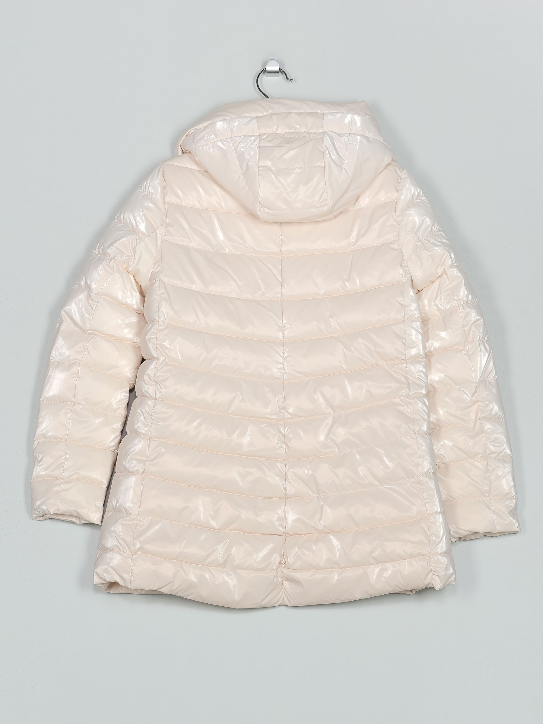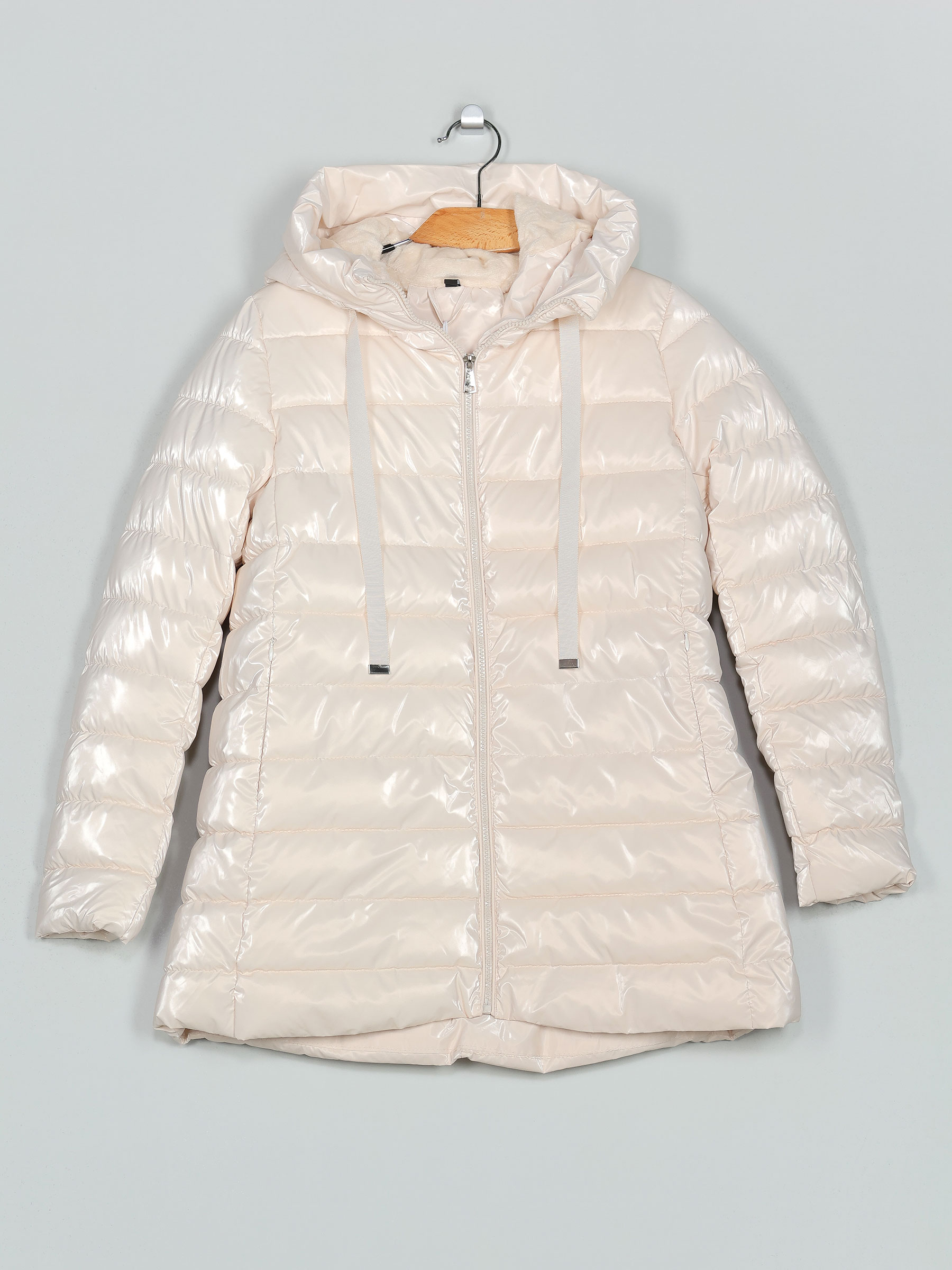 Anorak efecto charol. Acolchado. Water repellent. Acabado interior efecto pelo combinado a tono. Capucha no desmontable. Bolsillos laterales con cremallera. Cuello subido. Manga larga. Cierre de cremallera central.