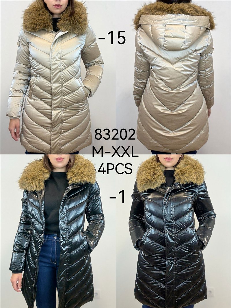 Detalles de anorak amplio acharolado water repellent cuello pelo MF-AF-83202