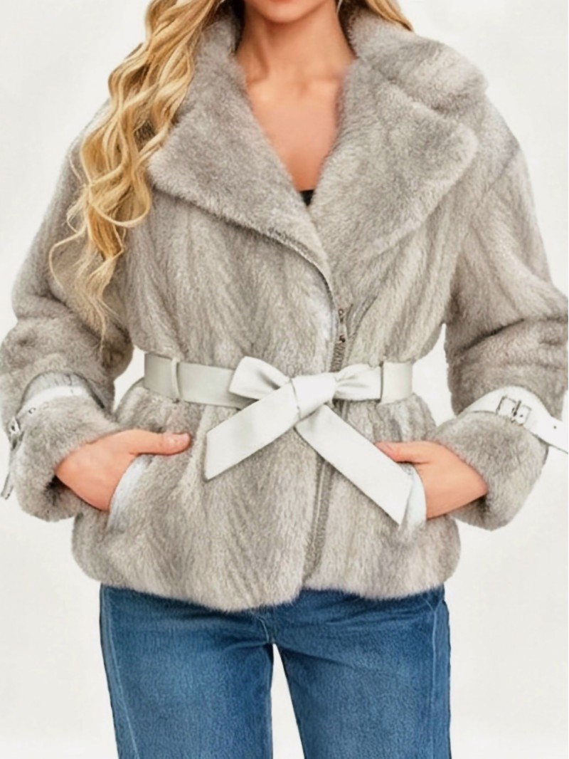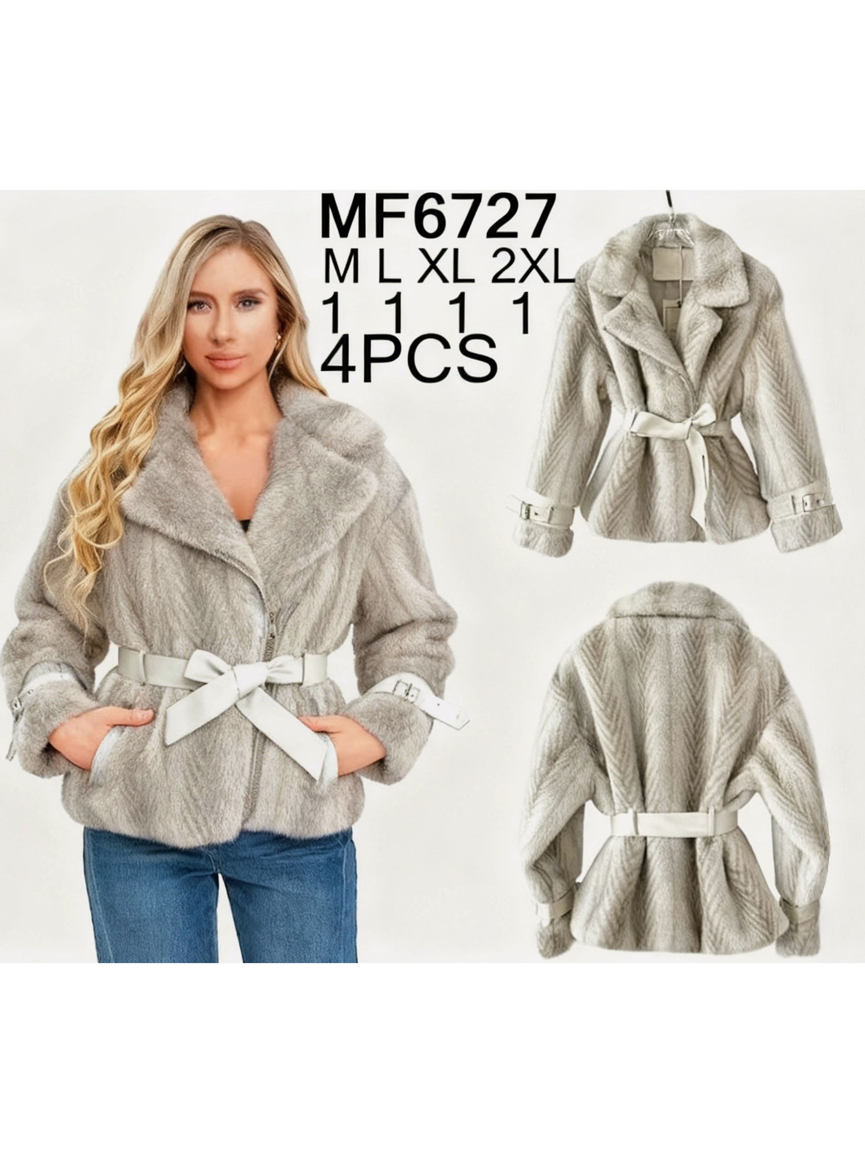 Detalles de abrigo biker pelo cinturón MF-MF6727