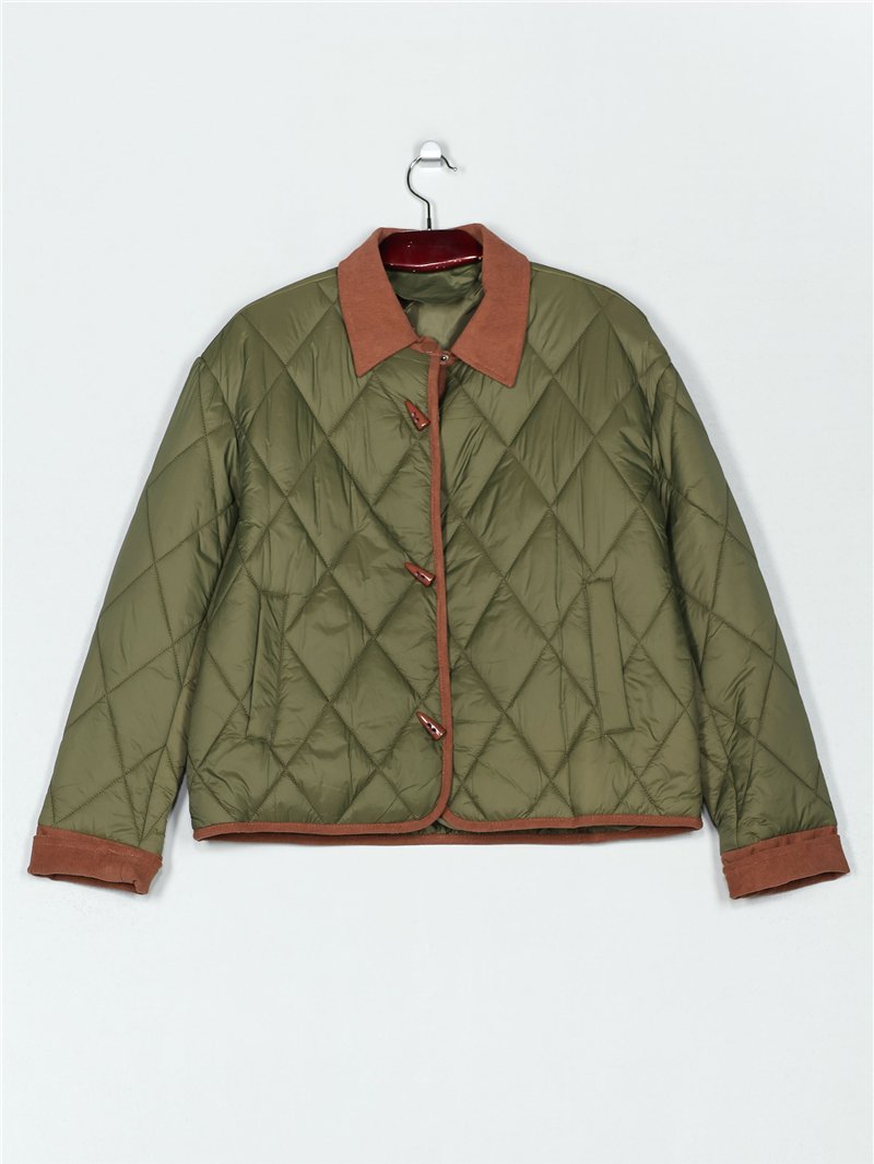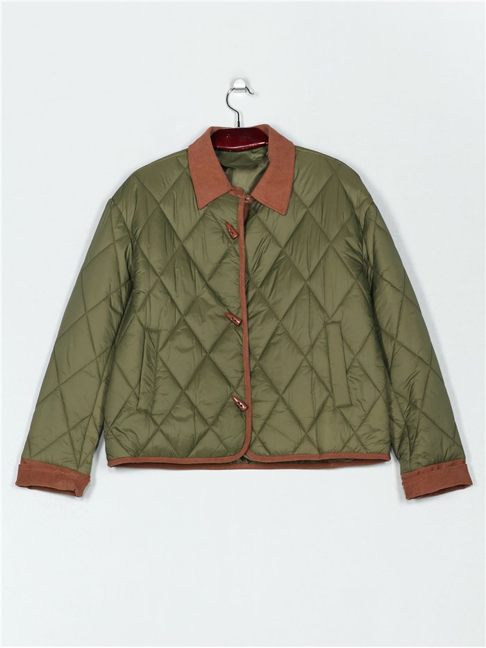 Detalles de chaqueta ligera acolchada cuello contraste MF-AF-82020-8-ARMY-GREEN