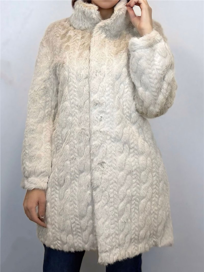Detalles de abrigo amplio pelo textura trenzada MF-16056-2-APRICOT