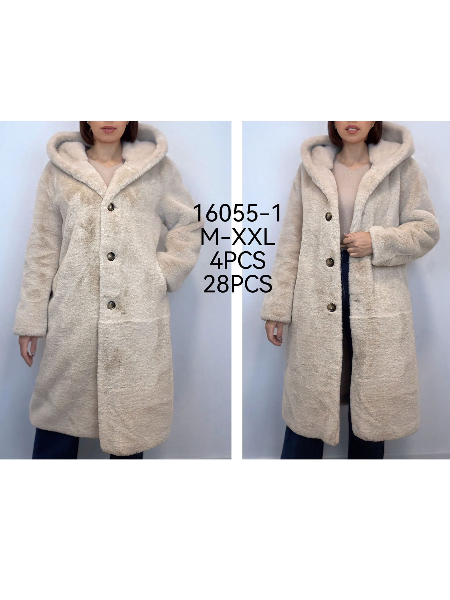 Detalles de abrigo largo pelo con capucha MF-16055-1-APRICOT